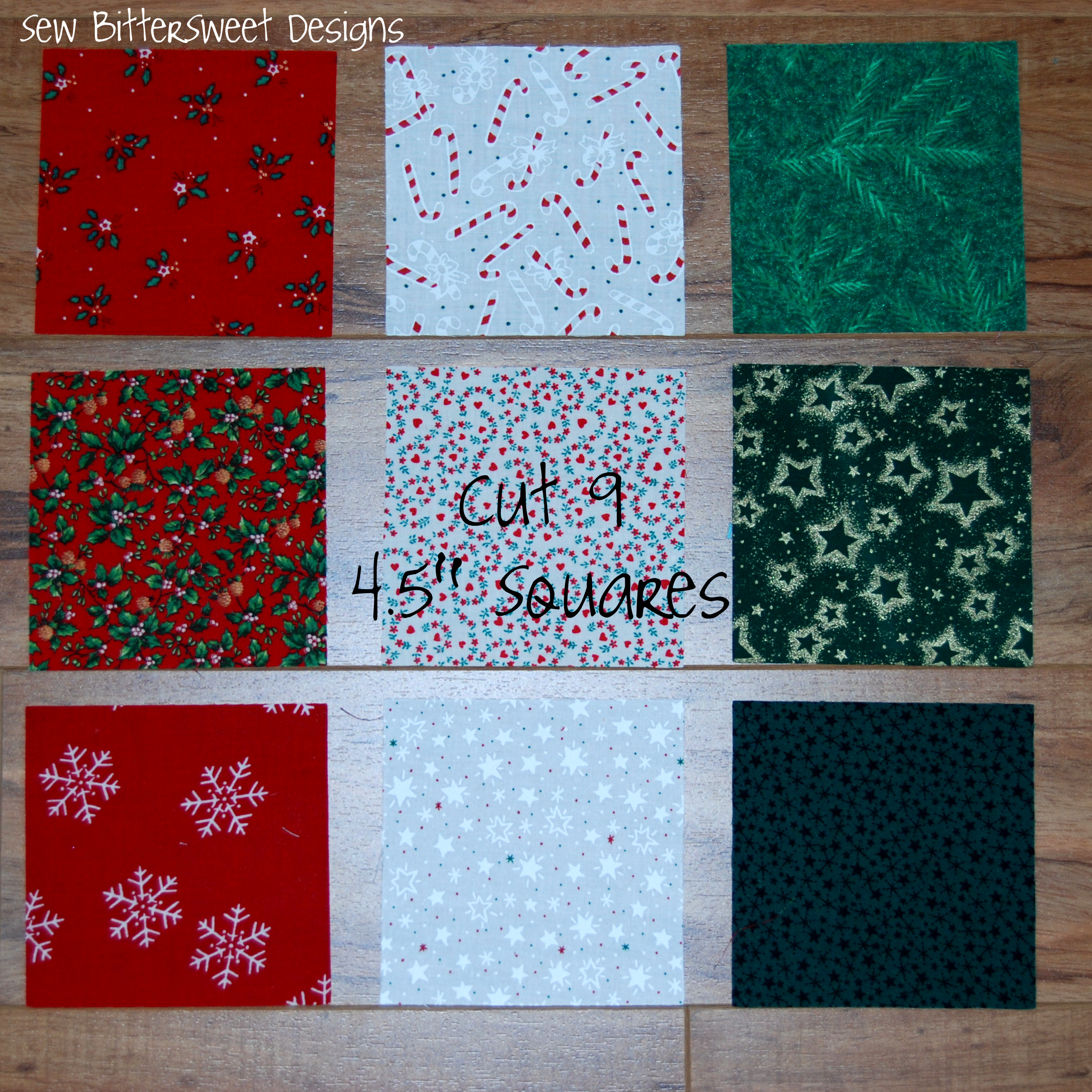 You will need nine 4.5 inch squares – remember this block is versatile and can be done with vintage or with updated modern prints!