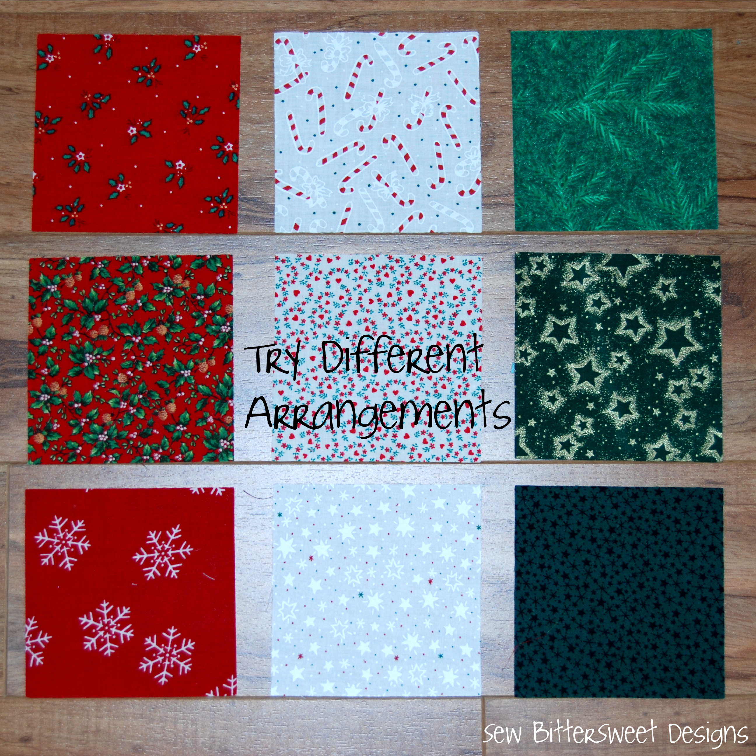 Lay out your squares in lots of different arrangements until you find one you like.
