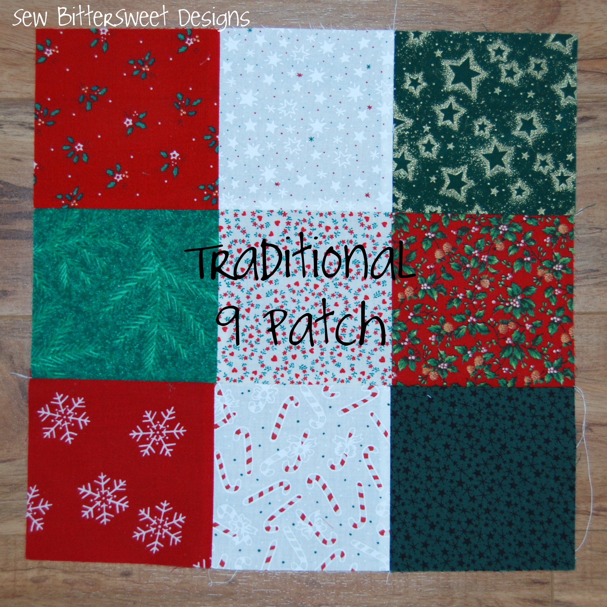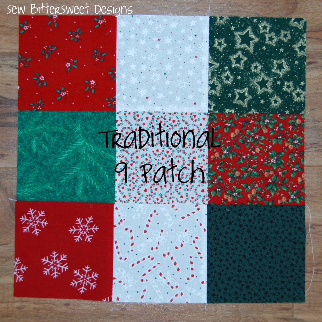 In my Vintage Christmas Sampler I wanted to make sure I had some very traditional blocks and also some new blocks that I designed. One of the most basic blocks for any quilter is a nine patch block – so much can be done with a 9 patch block. In the Encyclopedia of Pieced Quilt Patterns there are 3 chapters with over 550 different types of 9 patch blocks! Mine is the most absolute basic.