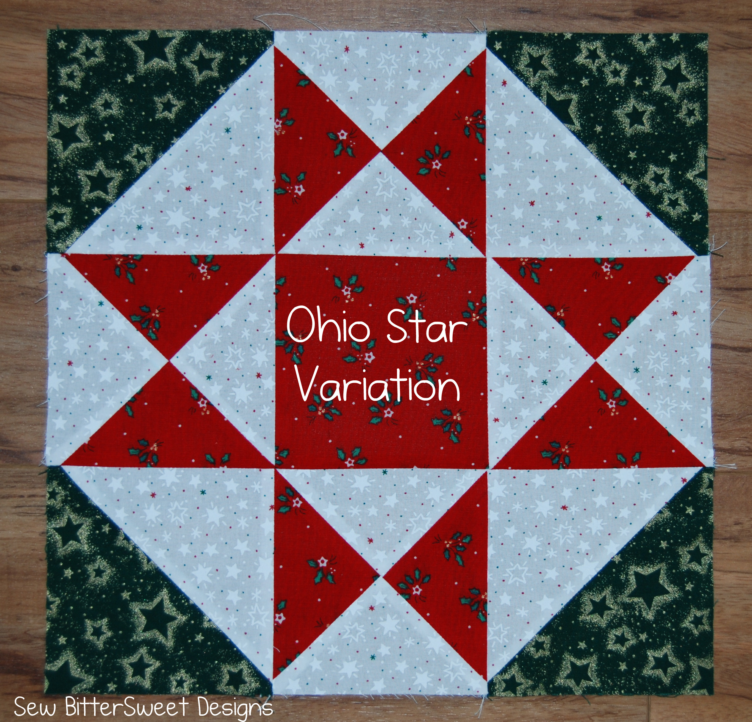 I call this a variation on the Ohio Star block because in the corners I added half square triangles (HSTs). I liked it because it allowed me to add a little more color to the block and it allowed me to add more visual interest. This block is part of my Vintage Christmas Sampler…which I am really hoping will be done before Christmas!