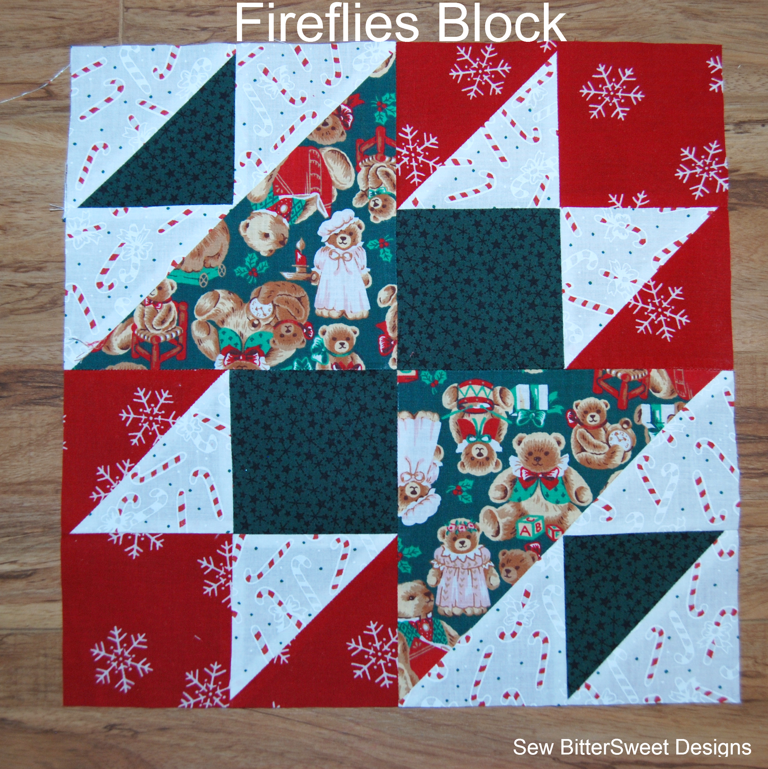 I love this block. It is block number 1316b – Fireflies. It is in the Encyclopedia of Pieced Quilt Patterns and is attributed to James. It is a fun block and great for featuring a printed fabric. This is the next block in my Vintage Christmas Sampler.
