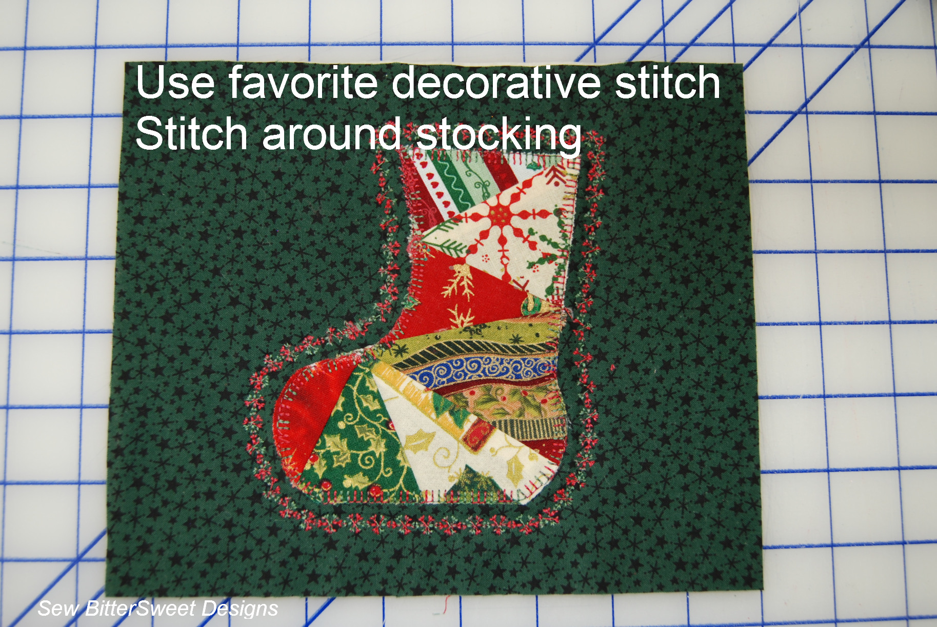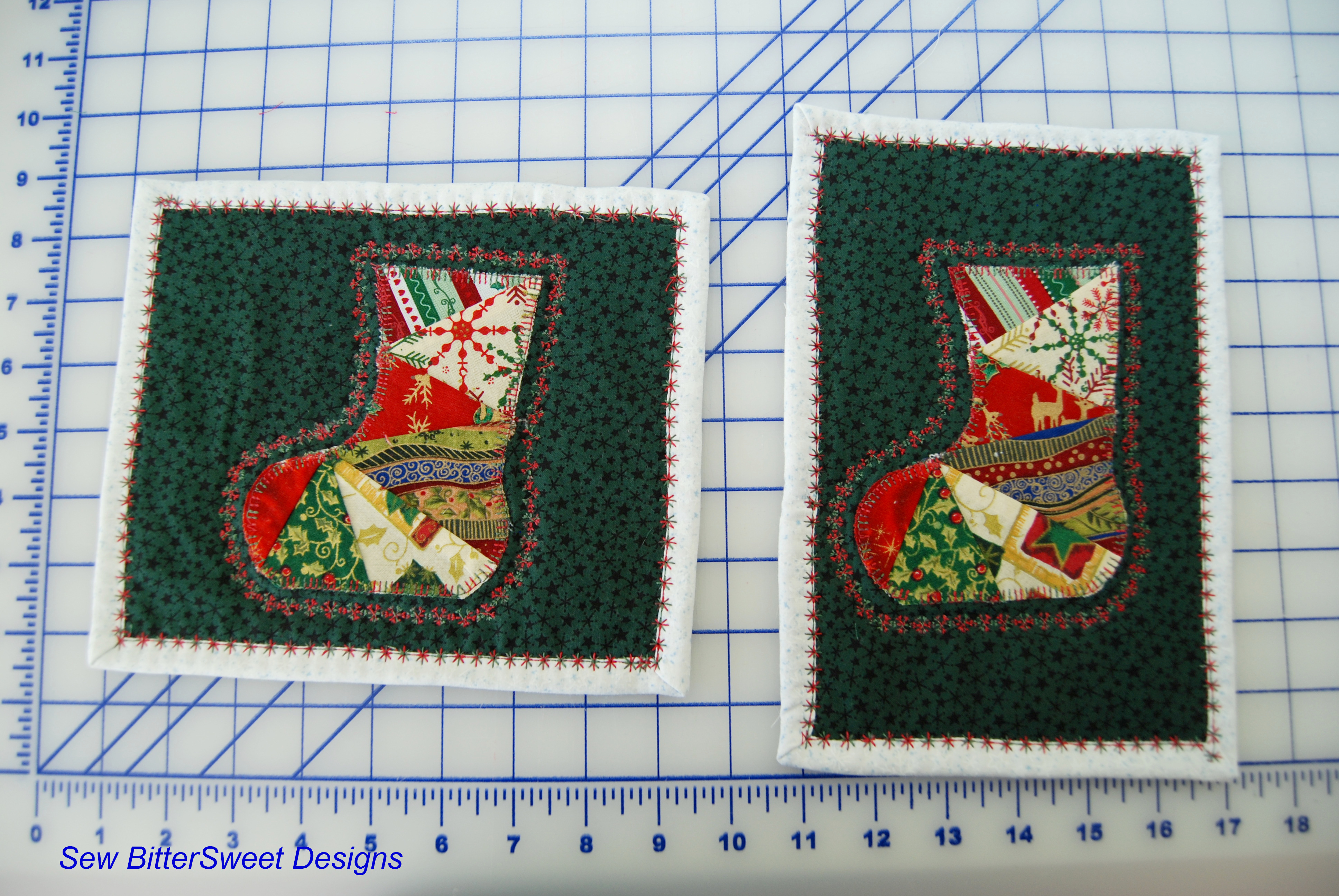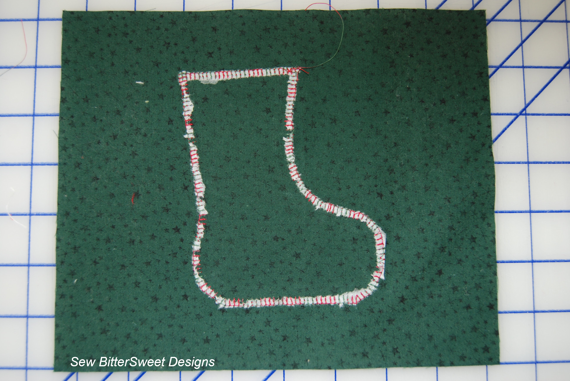 After I had my machine all set up with the ideal conditions suggested by Superior Threads – I got sewing. I started with appliqueing the stockings down, and I was really impressed with the thread, not a single break and the tension on the back was perfect.