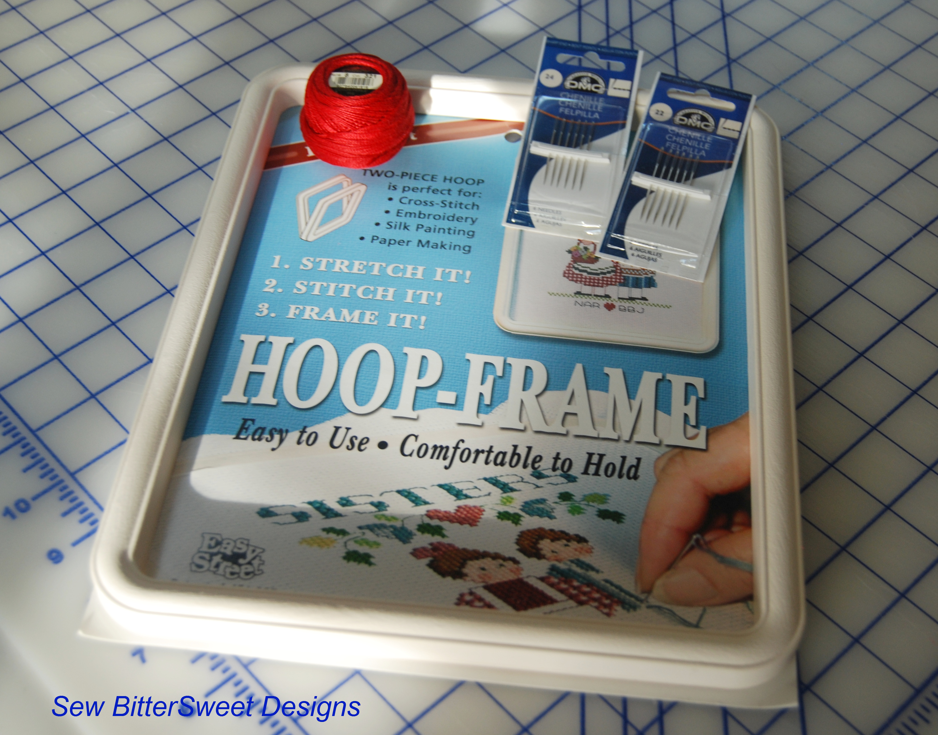 I picked up some perle cotton number 8 in a beautiful red, some needles and a frame. I figured I needed to try hand quilting with and without a frame of some sort to see what worked for me so I picked up a cheapy little plastic frame. We shall see!