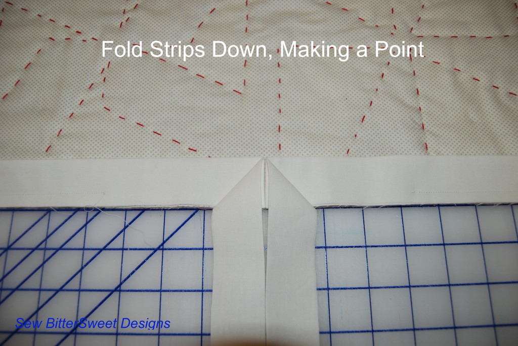 The fold your fabric back down  – align it with the next edge you will be sewing on (you are creating your mitered corners)