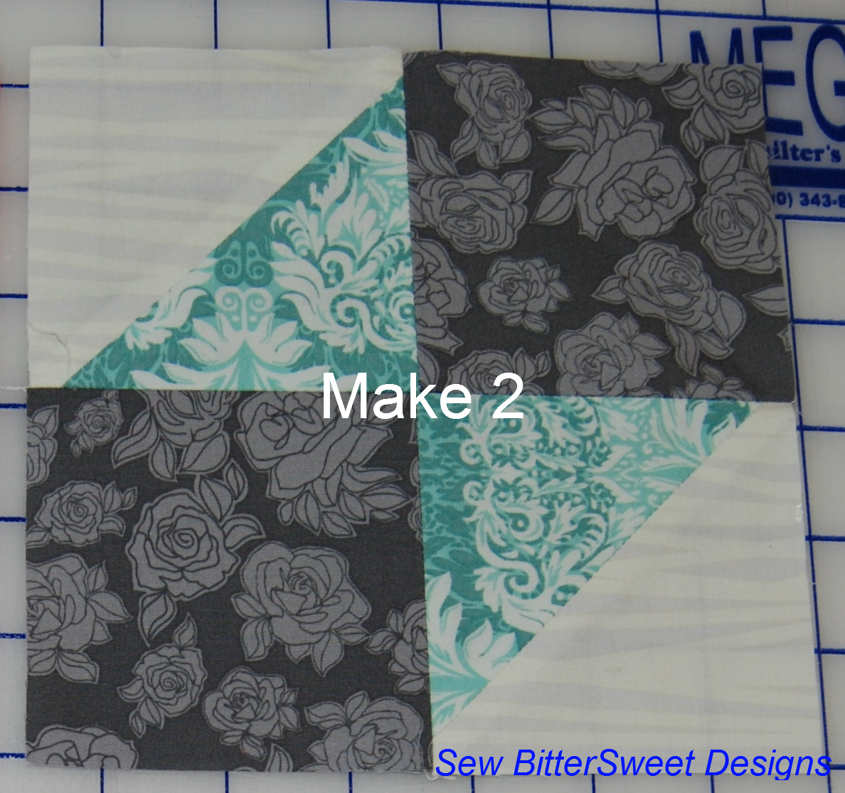 (Hint) – place the pieces right sides together – line up the points and sew – then trim down to 6.5″