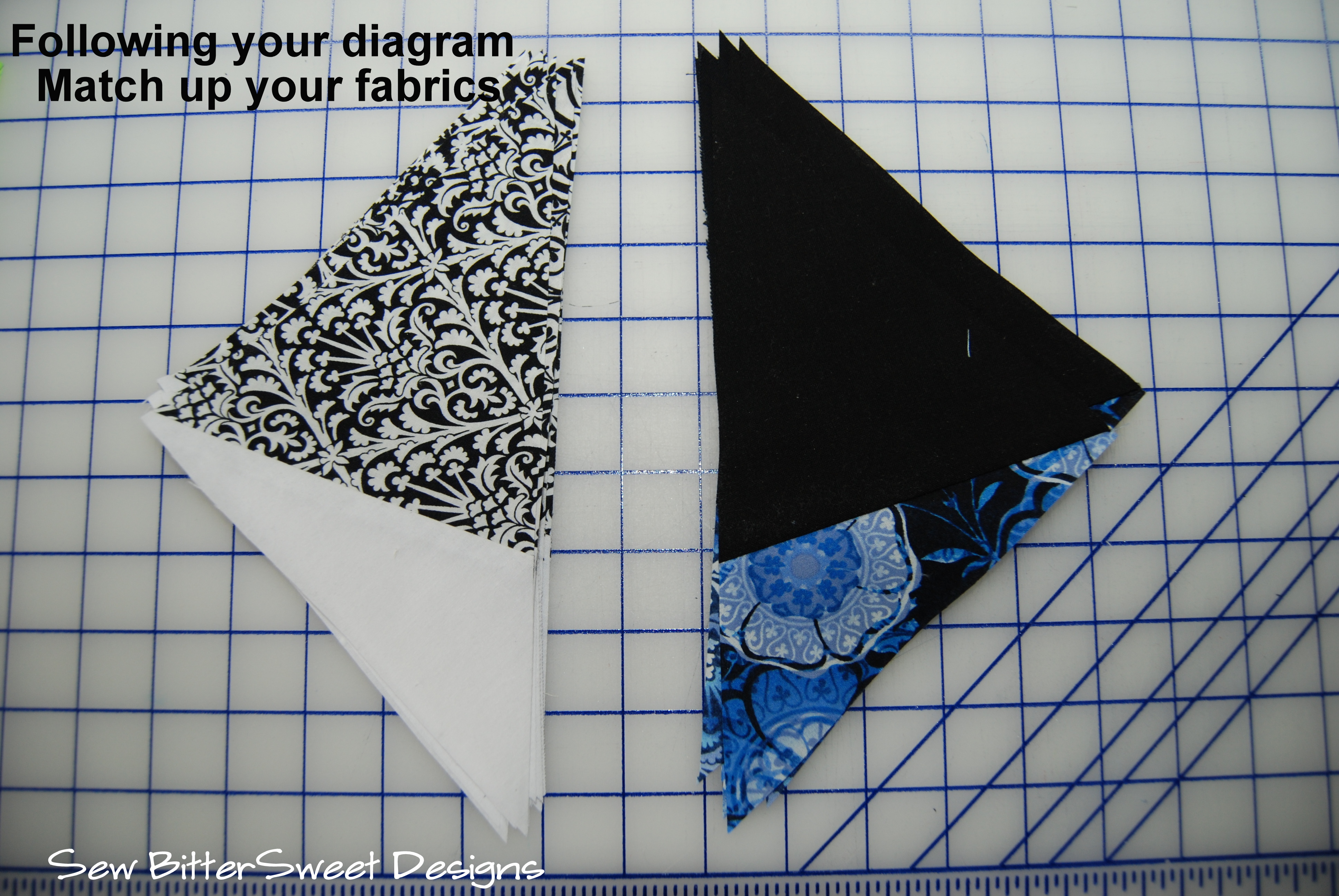 NOTE: It is important that you sew each piece in the order, I’ve listed – this will help you match up your seams when you piece your sections together!