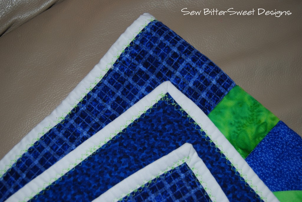 I also decided to use the So Fine to sew down the binding. In order to add a little extra pizzazz (not that my hubs actually noticed) I did a decorative stitch
