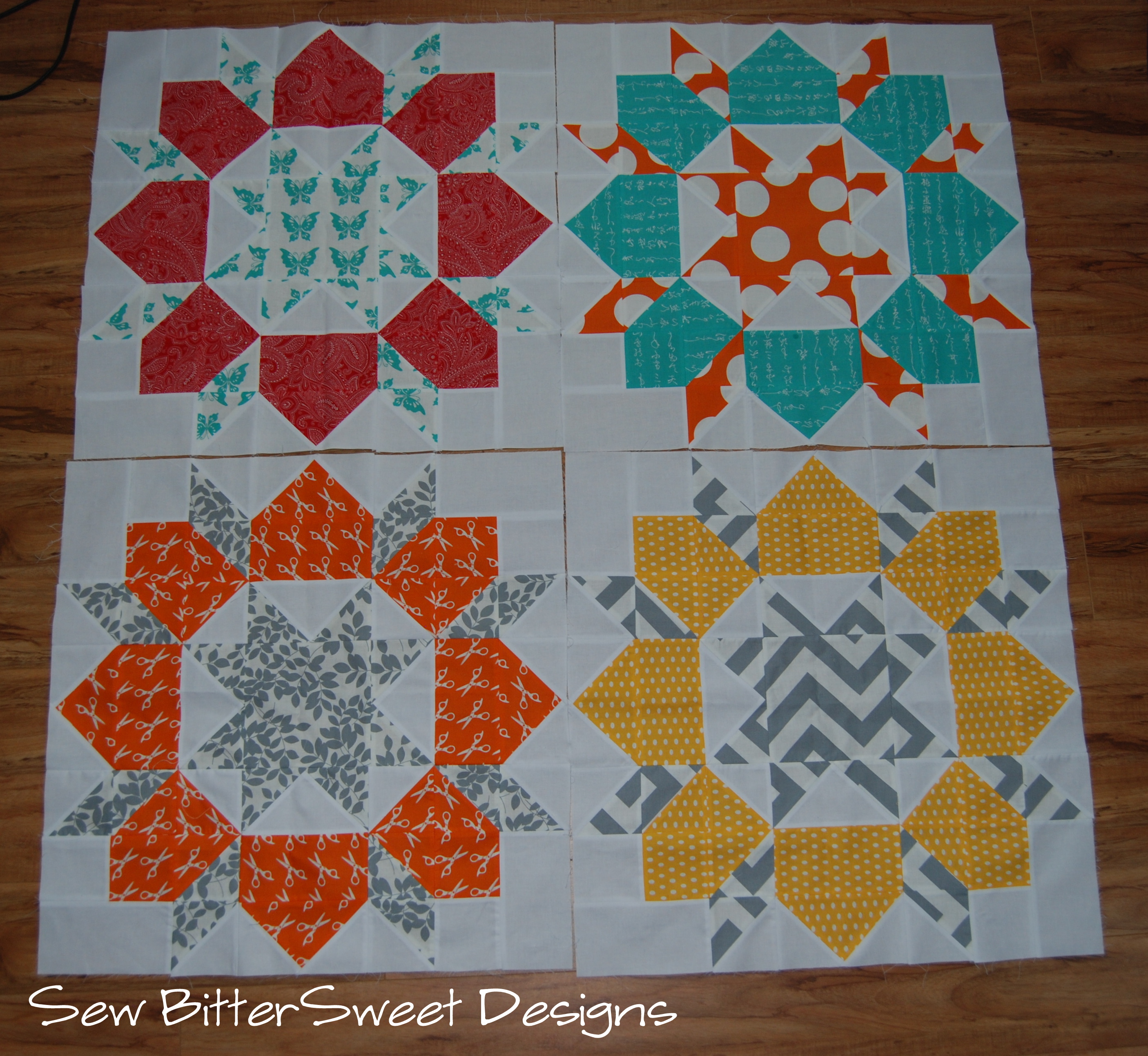 The yellow and gray block is just fabulous. But then the orange and gray block is fabulous. But then the aqua block is fabulous. I guess I like swoon blocks in awesome combinations and I didn’t know it!