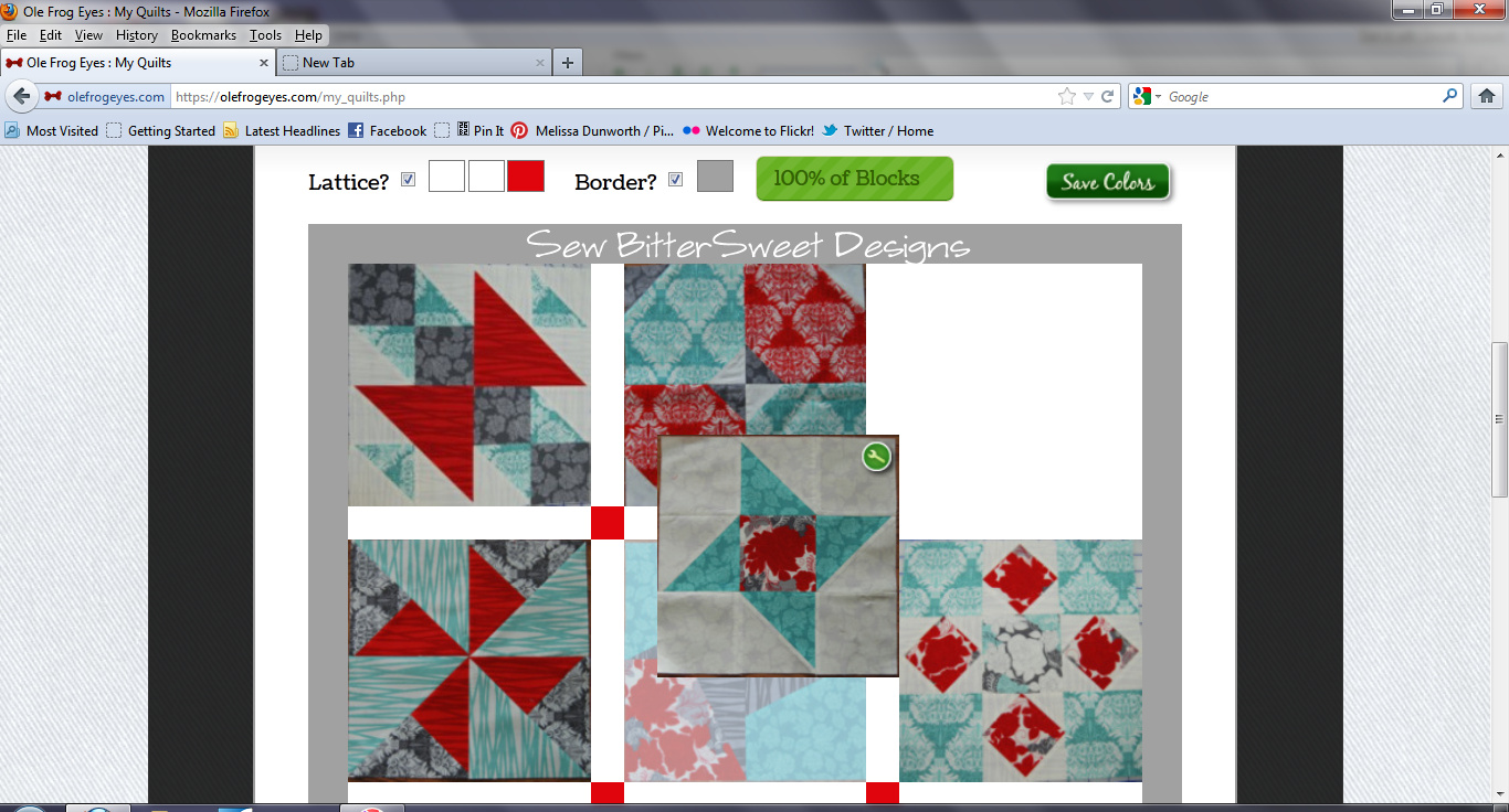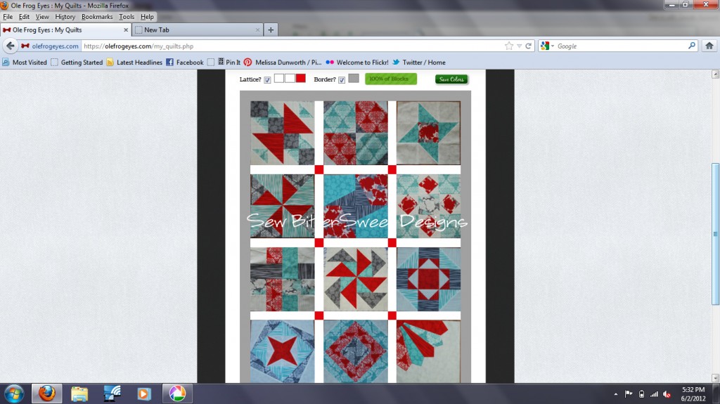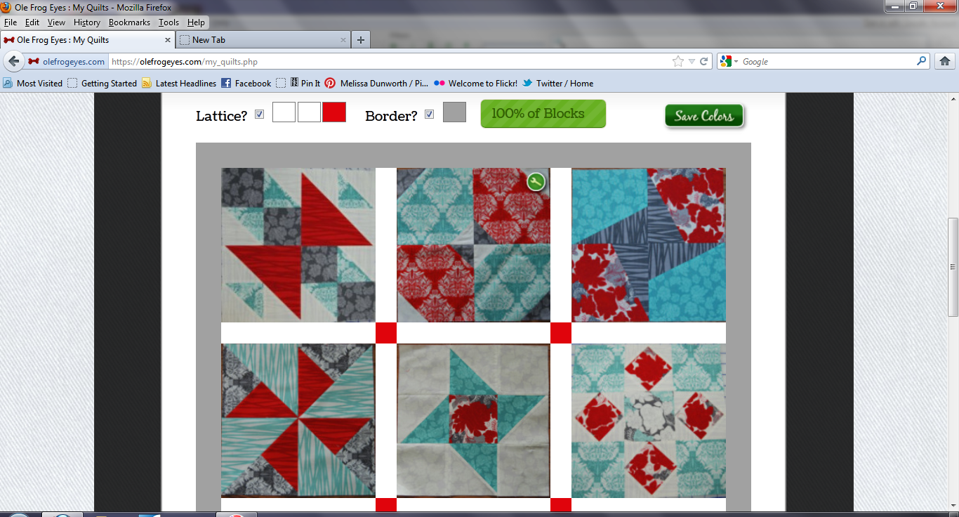 Happy Sunday Everyone! I know I’m usually not here on Sunday’s but today I just had to come and share something cool and fun with you! Do you remember back in March I did a review of Ole Frog Eyes web tool? Well, I finally paid for my year long subscription and just in time too! Guess what was released on Friday?!? The drag and drop feature I recommended was implemented! I know I am not the only person who asked for the feature and I also know that it was something that they had been working on for quite some time and I am just so excited to use it! I have already finished my quilt top from the Sew Happy Geek QAL, but I decided to log in to Ole Frog Eyes and play around with the lay out yesterday…mainly because it was so EASY!