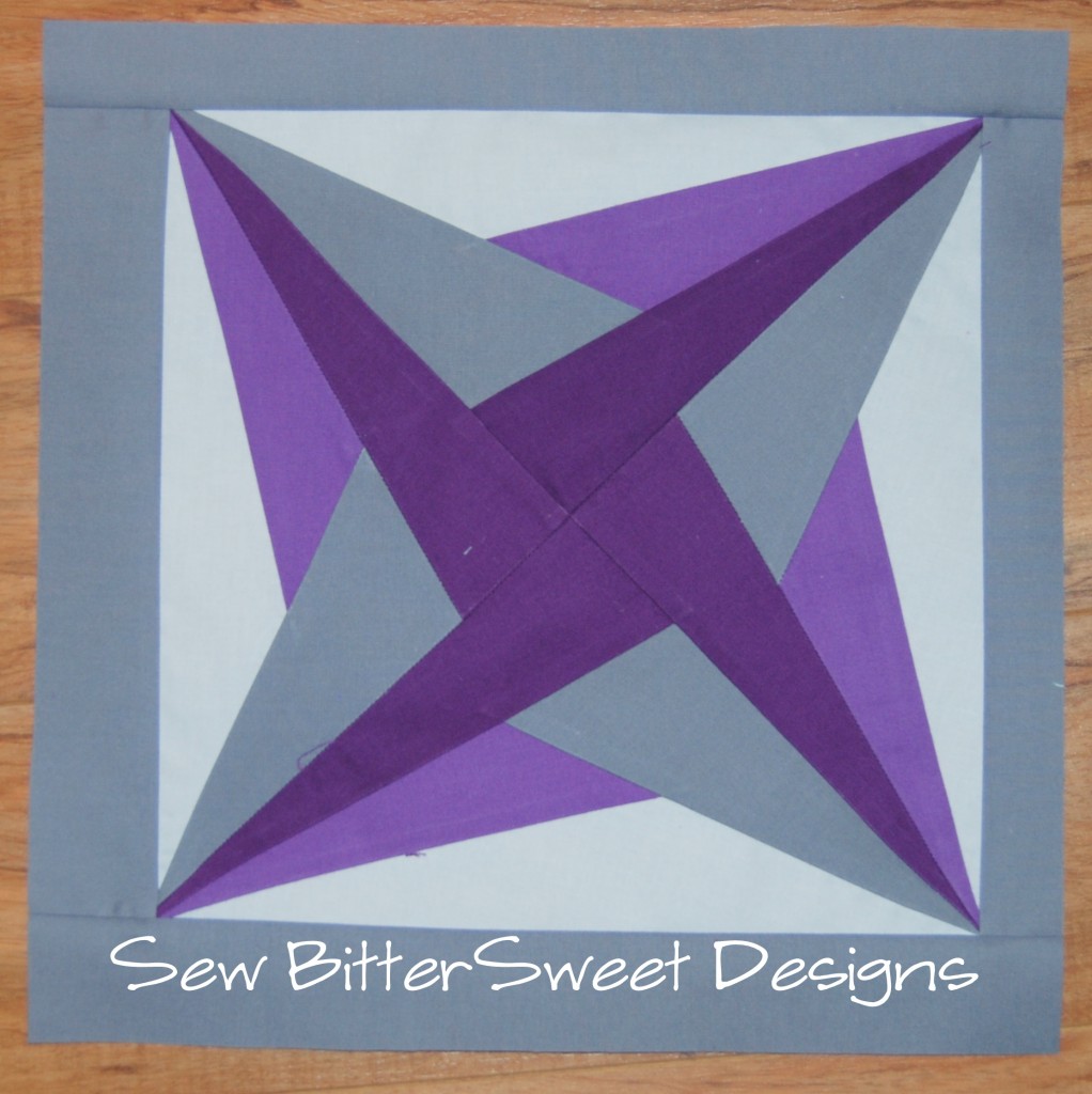 Well, since purple’s one of my faves, and I love paper piecing, you know this block would surely get my attention! Love it! I can’t wait to see what a bunch of ’em together looks like! I imagine there’d be lots of secondary patterns emerging. Very nicely done!
