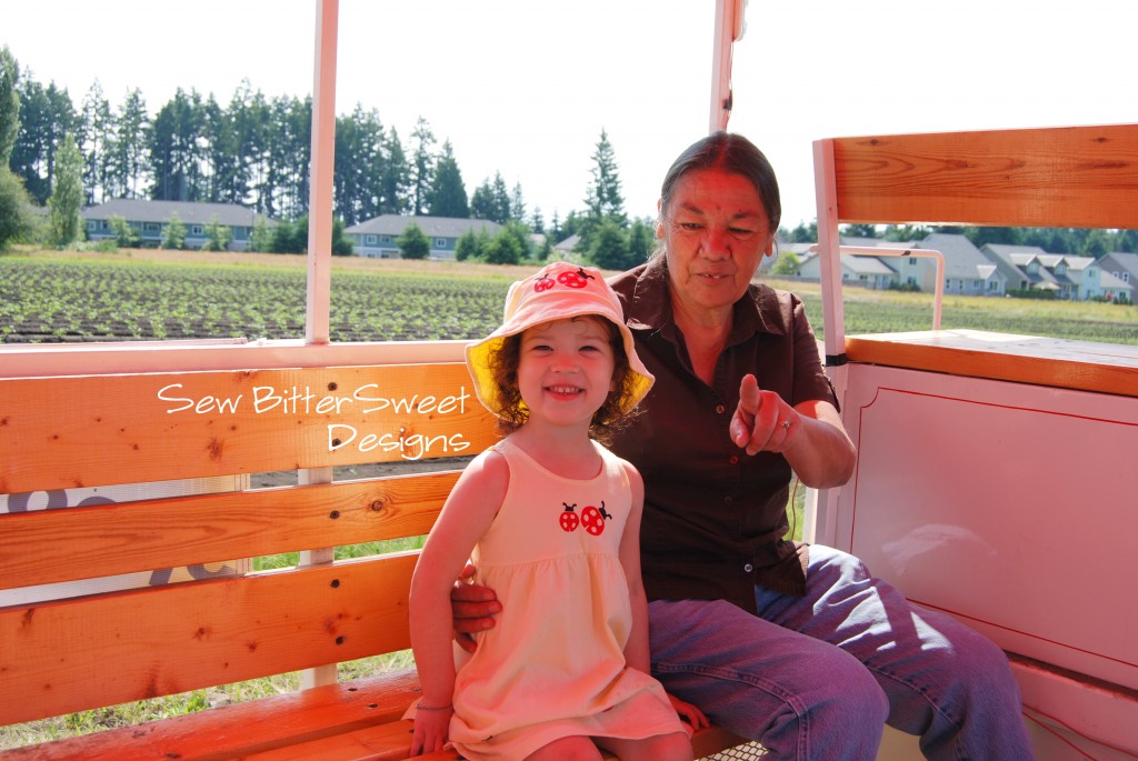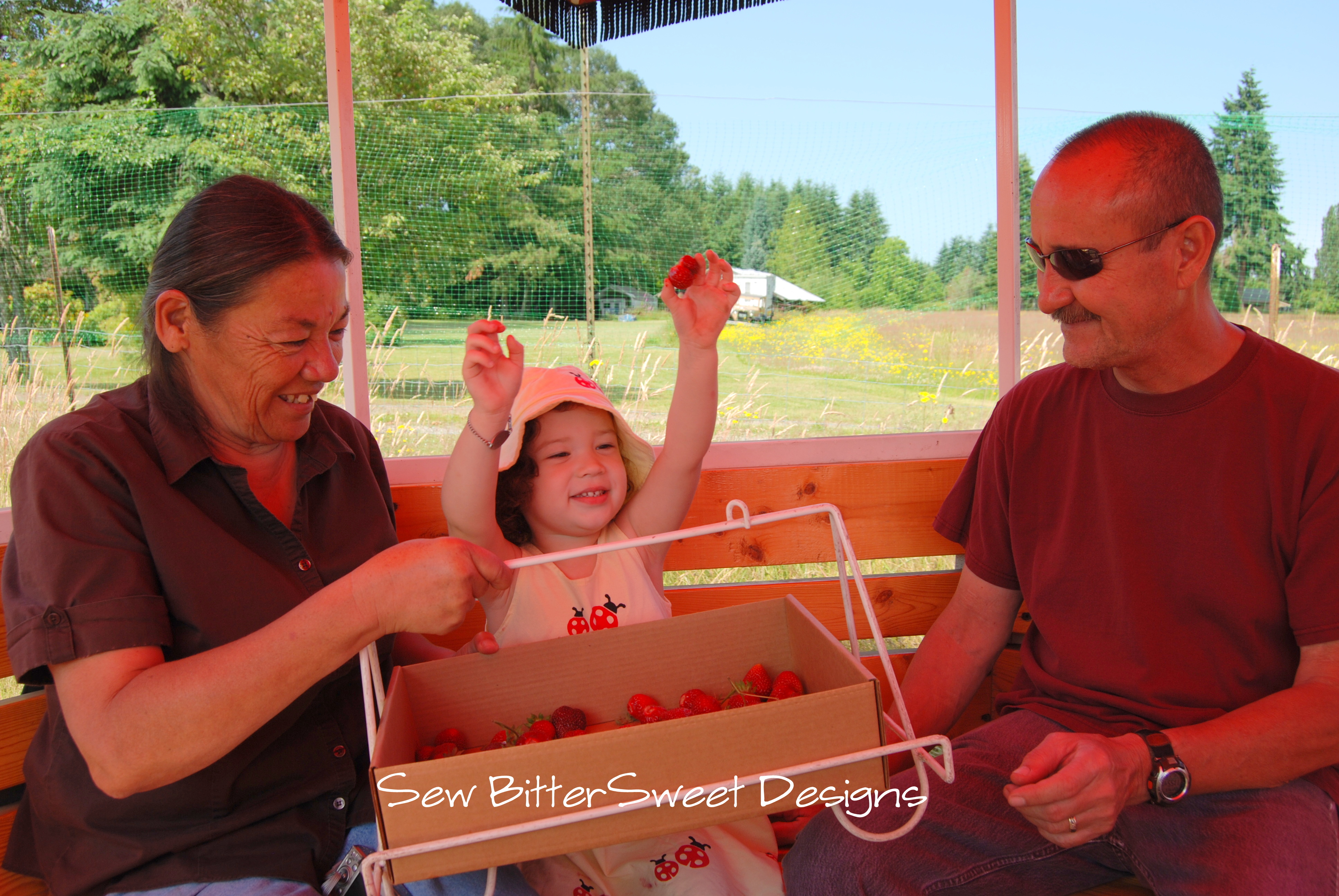 Here she is celebrating all her berries on the tractor ride back. These are my hubby’s parents, affectionately known as Granny and Poppy.