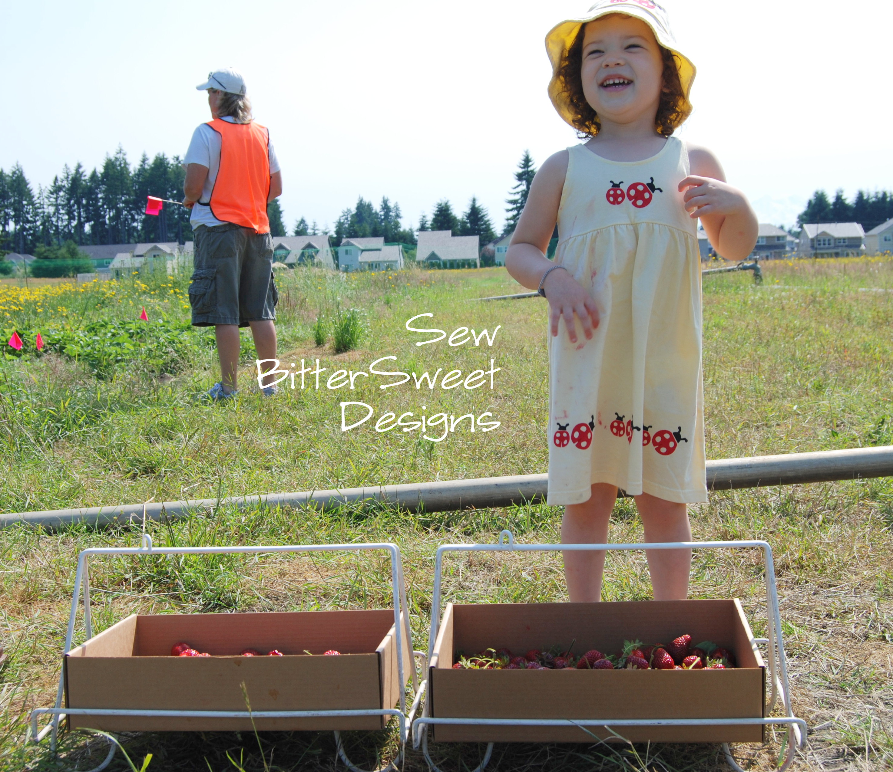 Anne looks so cute and happy, I think she likes berry picking! Cute little outfit and maybe you can applique over the stains! Enjoy your strawberries!
