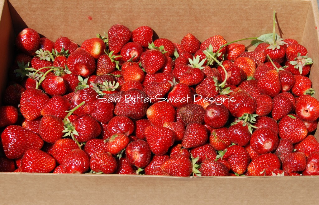 One of my girls’ fondest memories (or so they say NOW) was of every Memorial Day weekend growing up, when I’d take them out to the fields and we’d pick – 1 for the bucket, 1 for me, 1 for the bucket, 2 for me…and so on! Then we’d get home all tired out, but by next morning, I’d always have all the berries (pounds and pounds of ’em) washed, dried & debris removed…then they could each have a friend over (and they usually both chose the same boy!) and we’d all, and I mean ALL, pitch in and make strawberry jam! The friends always went home with a few pints, the girls each chose one to enter in the county fair, and the rest all went into the pantry. Oh, those were the days. It warms my heart to hear that my grandkids are now enjoying this little tradition, even tho we are a half a country away, they still call to tell me about how “mama says y’all used to take her when she was our ages..” SOOOO cute, and something we’ll always remember, and you’ll think of this day every time you see those berry stains! (I’d leave ’em in, just to enjoy the day over & over!)