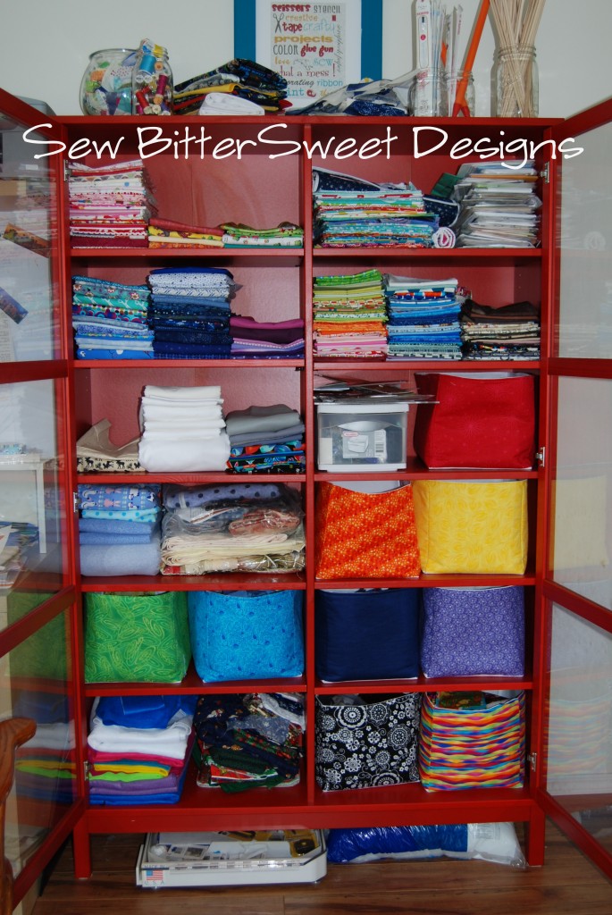 I love the way it looks now! I need to at least fold my fabric that way. Wish I had a cabinet like yours though!
