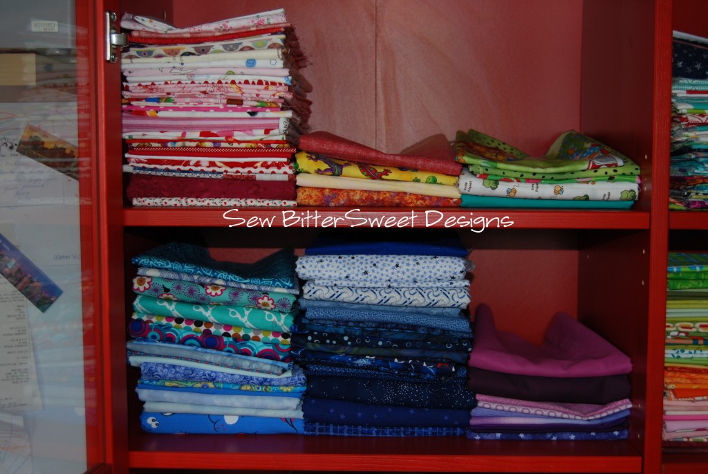Very Pretty. If I had space, I would so have a cabinet or book shelf for my fabric instead tubs shoved in the closet.
