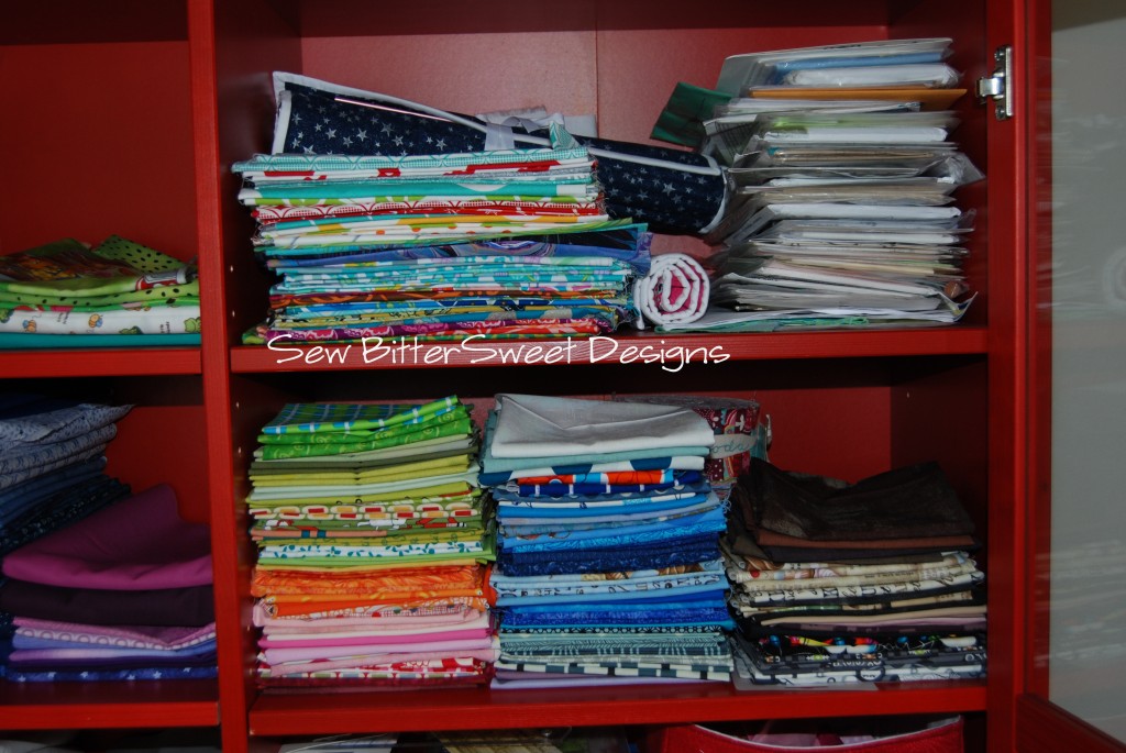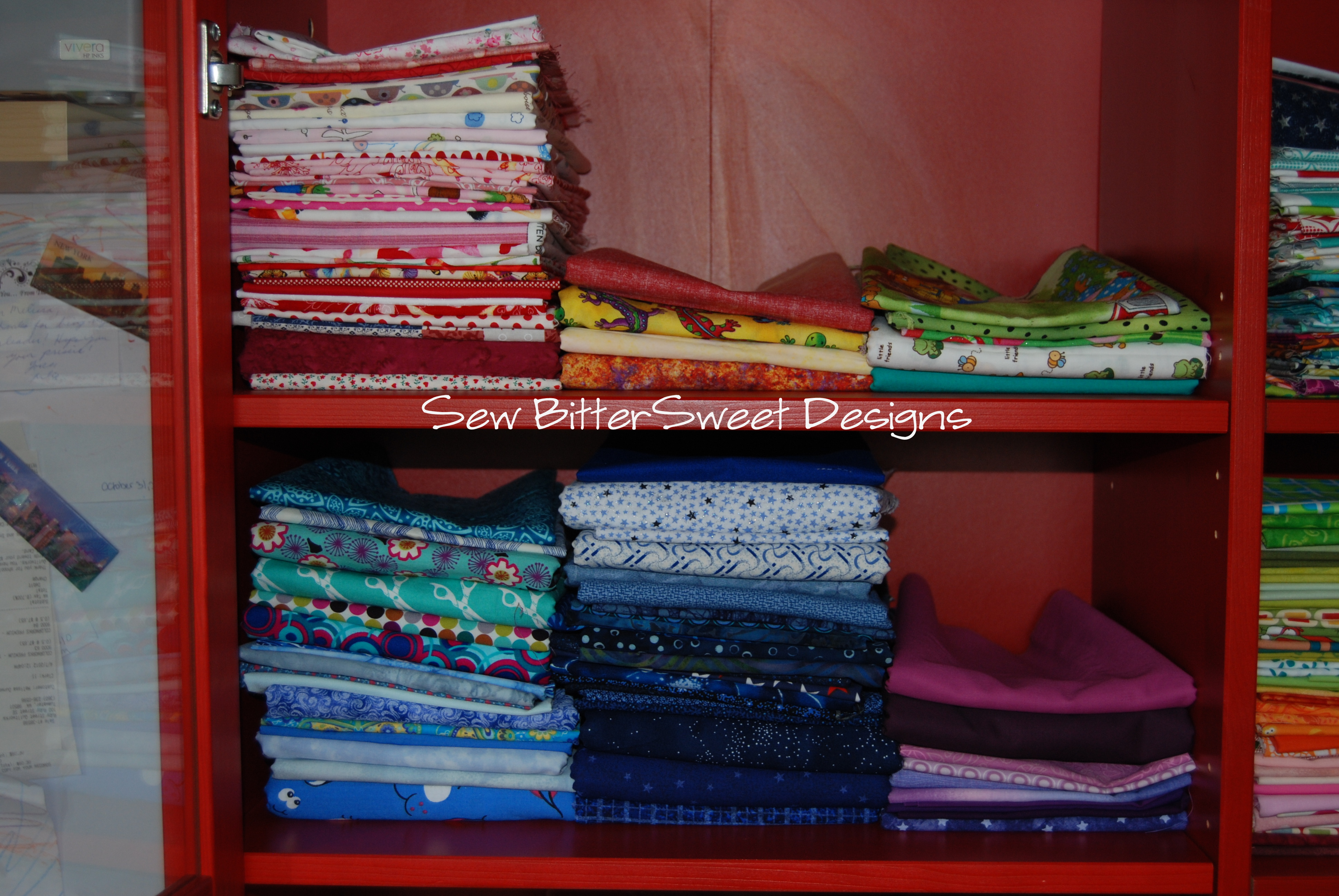 There is one more row of folded fabric that isn’t pictured (browns, grays, whites, blacks and novelty prints).