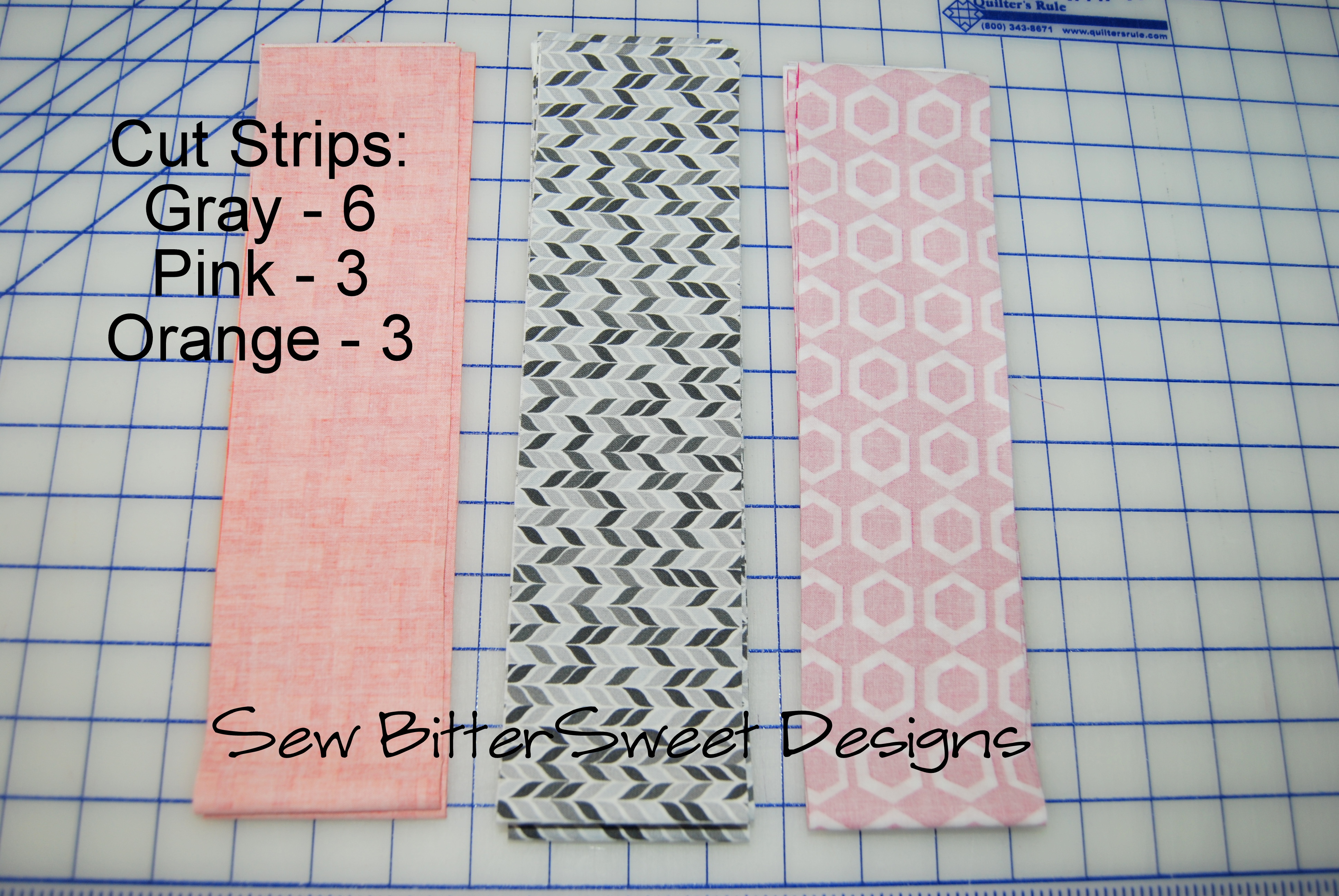 3 Strips Each of pink and orange – 3″ by width of fabric