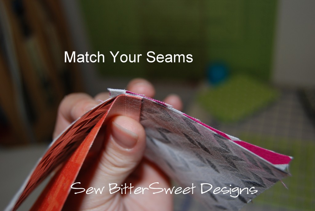 Next you will want to put your pieces right sides together and butt your seams up – this is what gives you the perfect points.