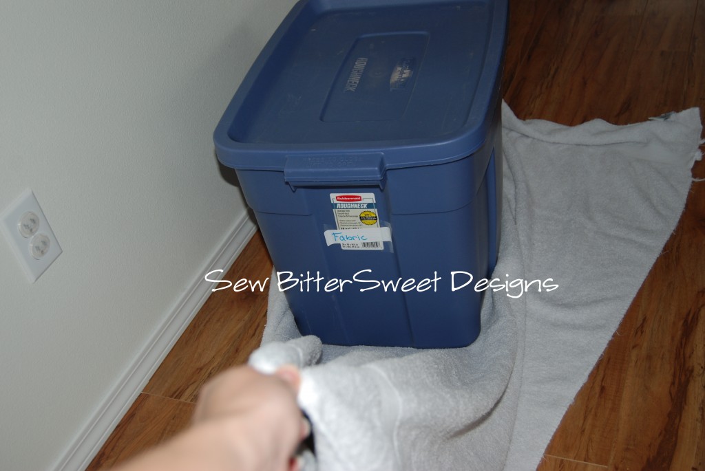 I grabbed a super old ratty towel and put the tote on top before I started filling it up. Then I could just drag it across the room to the garage. It spared my floor from scratches and my back from aching!