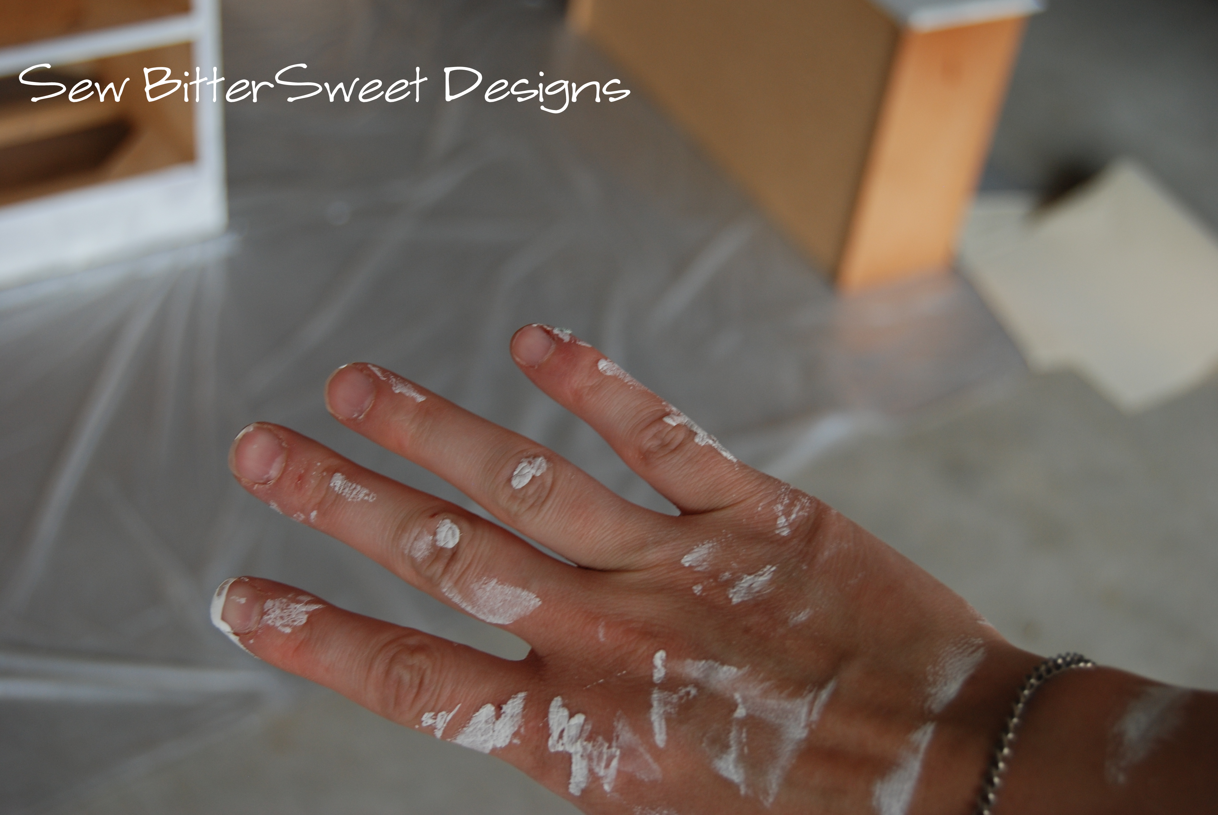 Here’s the dresser with all the hardware removed and ready for painting! Now, I have to admit, that aside from taking all the hardware off and getting a drop cloth, I really had no idea what to do next, I was fairly certain I would need to sand everything, but luckily I was informed that it was not necessary!