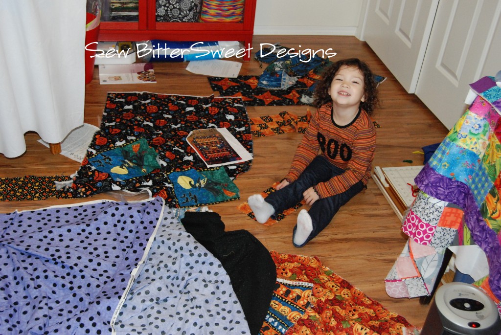 This is a kit that my mom bought YEARS ago and I started making it last year but never finished it because that’s what we quilters seem to do! So what do you think…do I give in to the whims of a 2 year old? It might not be done in time for Halloween, but I do love to put a smile on her face!