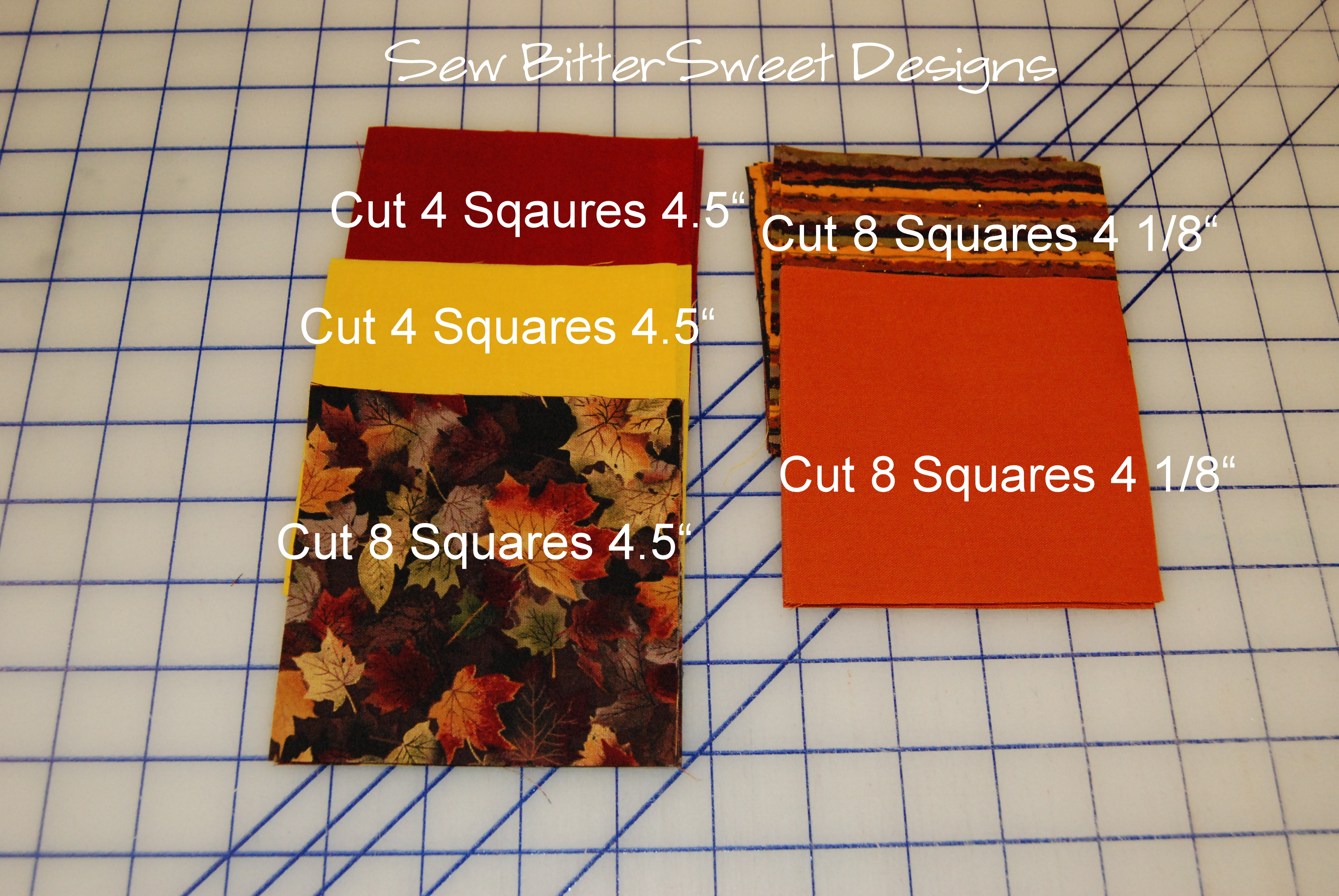 You will start by cutting the following: (the fabrics on the left are for your QSTs, the fabrics on the right are for HSTs)