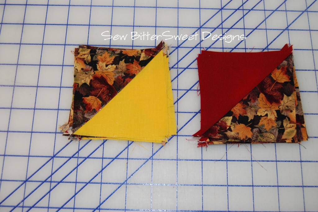Cut them along the line that you drew and press to the side. You will have 16 HSTs that are destined to become QSTs: