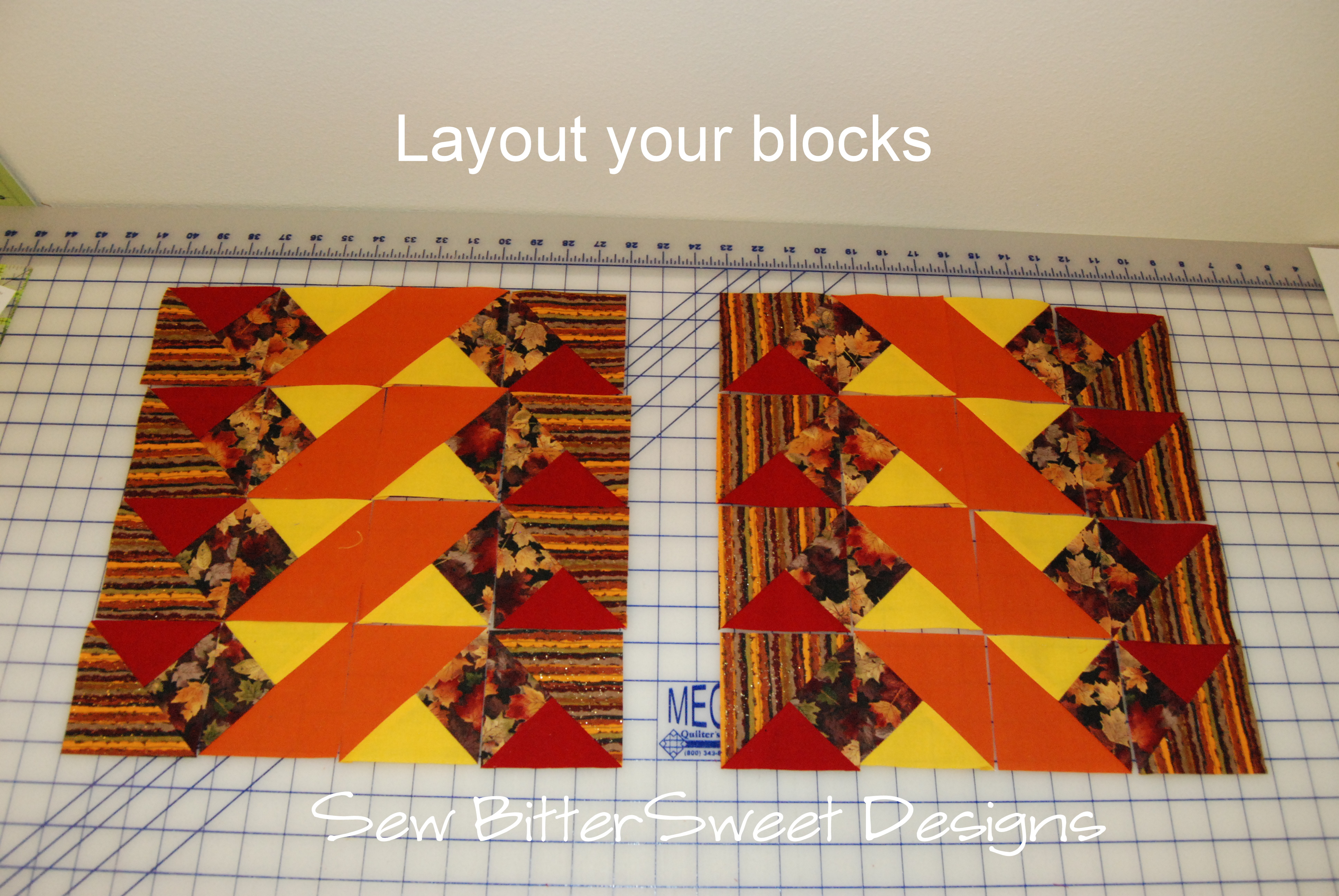 Again, chain piece these to make the process go by faster, snip them apart, cut along the drawn diagonal and press to the side. Then you will be ready to layout your blocks!