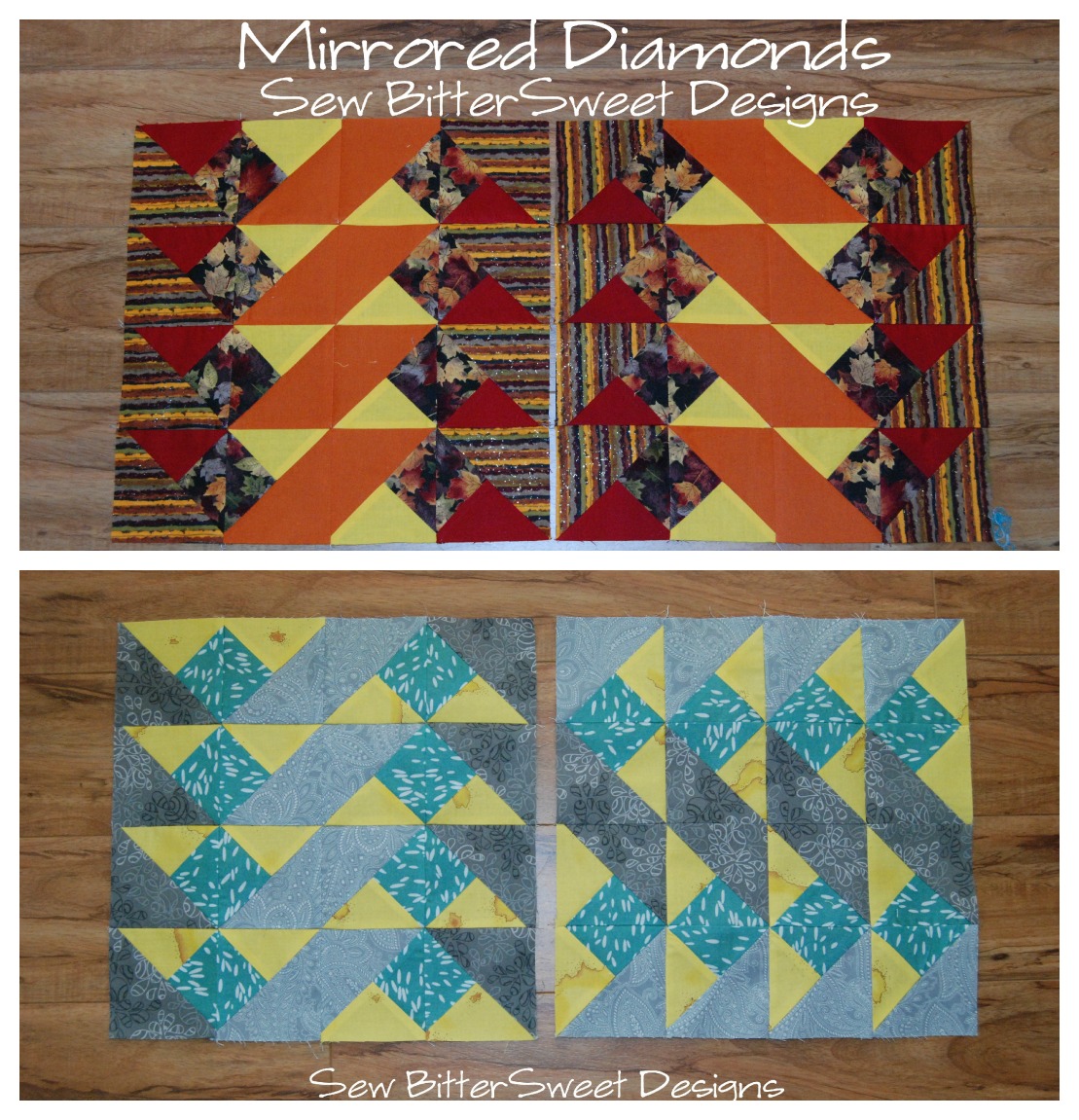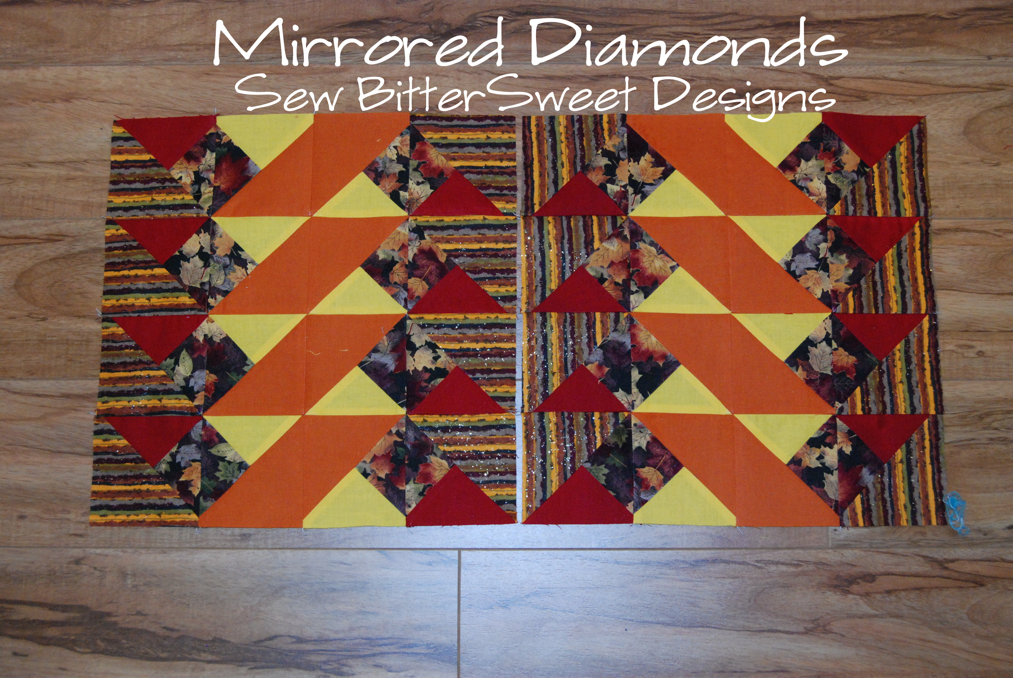 On with the block making! My block is called Mirrored Diamonds (pdf of tutorial: Mirrored Diamonds Tutorial):