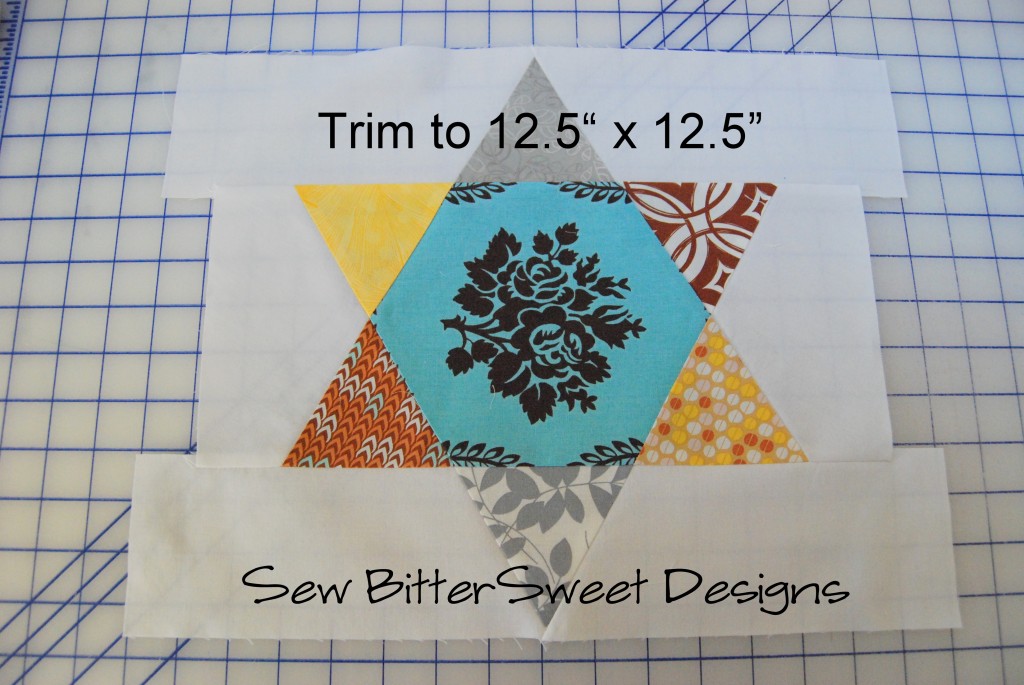 Trim the block down to 12.5” x 12.5”