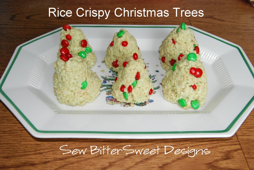 Rice Crispy Treat Christmas Trees made by Anne and I for my hubs. I tried to dye the marshmallow green, but as you can see, it wasn’t so successful. Note to self: use more food color next time! The ornaments are m&ms and red hots. Anne had so much fun decorating these!
