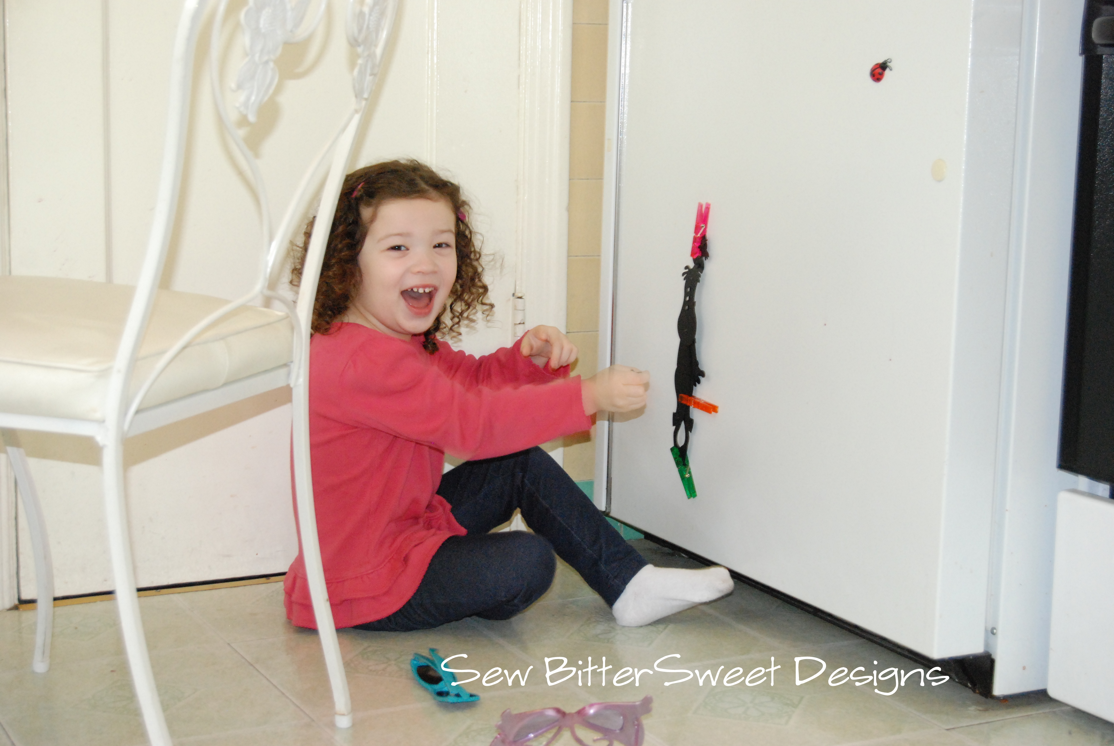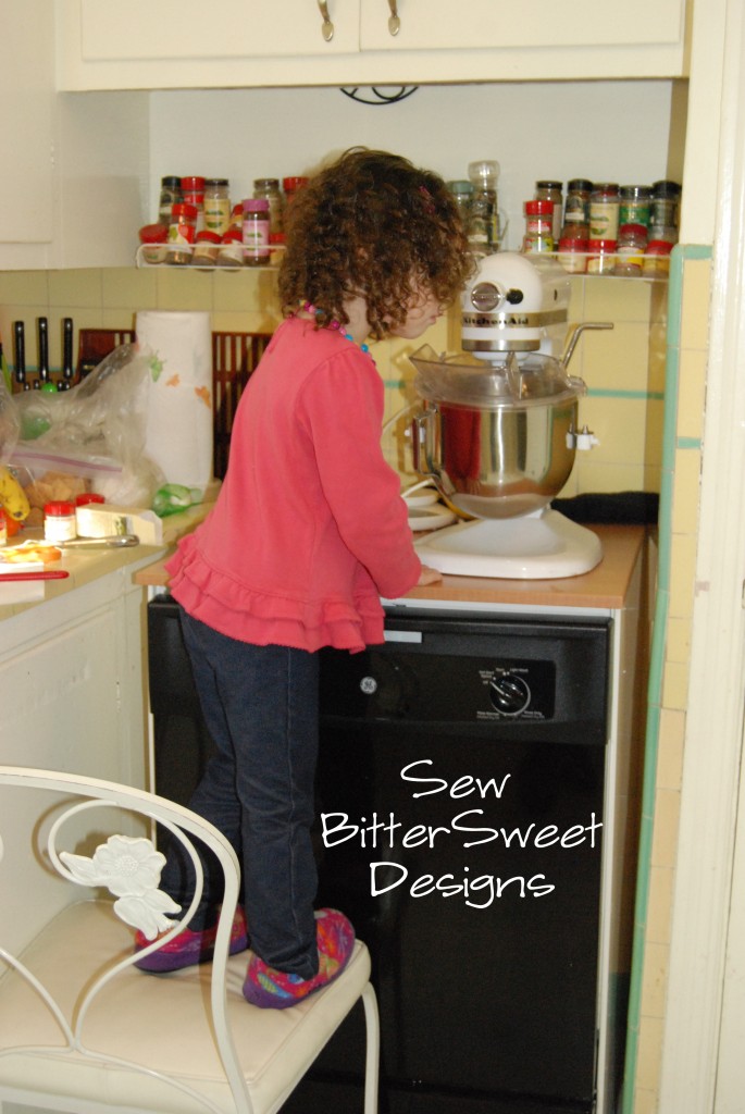 Once the cookies were in the oven boredom set in, after all it isn’t really fun staring at the oven window. So she entertained herself with the fridge magnets.