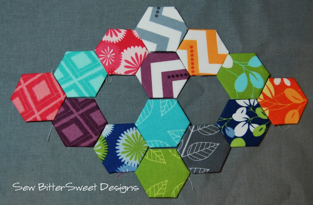You have caught the hexi bug! Love the Simply Color fabrics, I started quilting my quilt I made with a layer cake of it. So pretty. I like the creative ways you are arranging your hexis