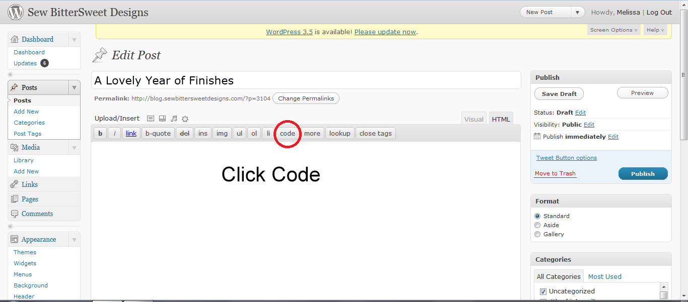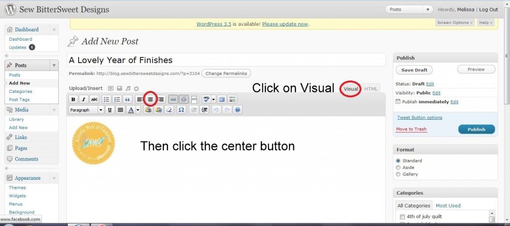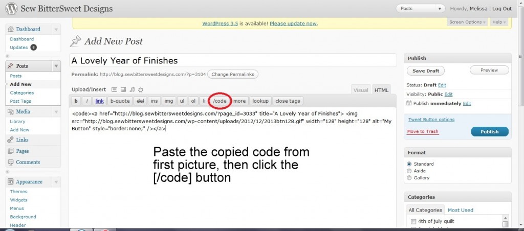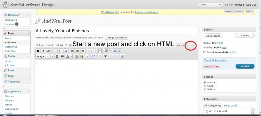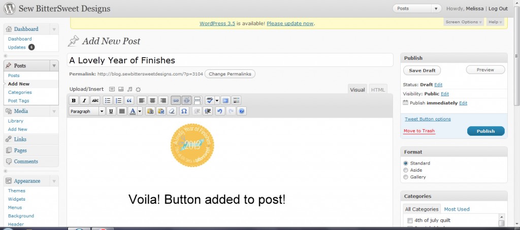 This is a tutorial for those people who use WordPress as a blogging platform. For a tutorial on adding a button to a blog post using Blogger, check out Shanna from Fiber of All Sorts, she has you covered!
