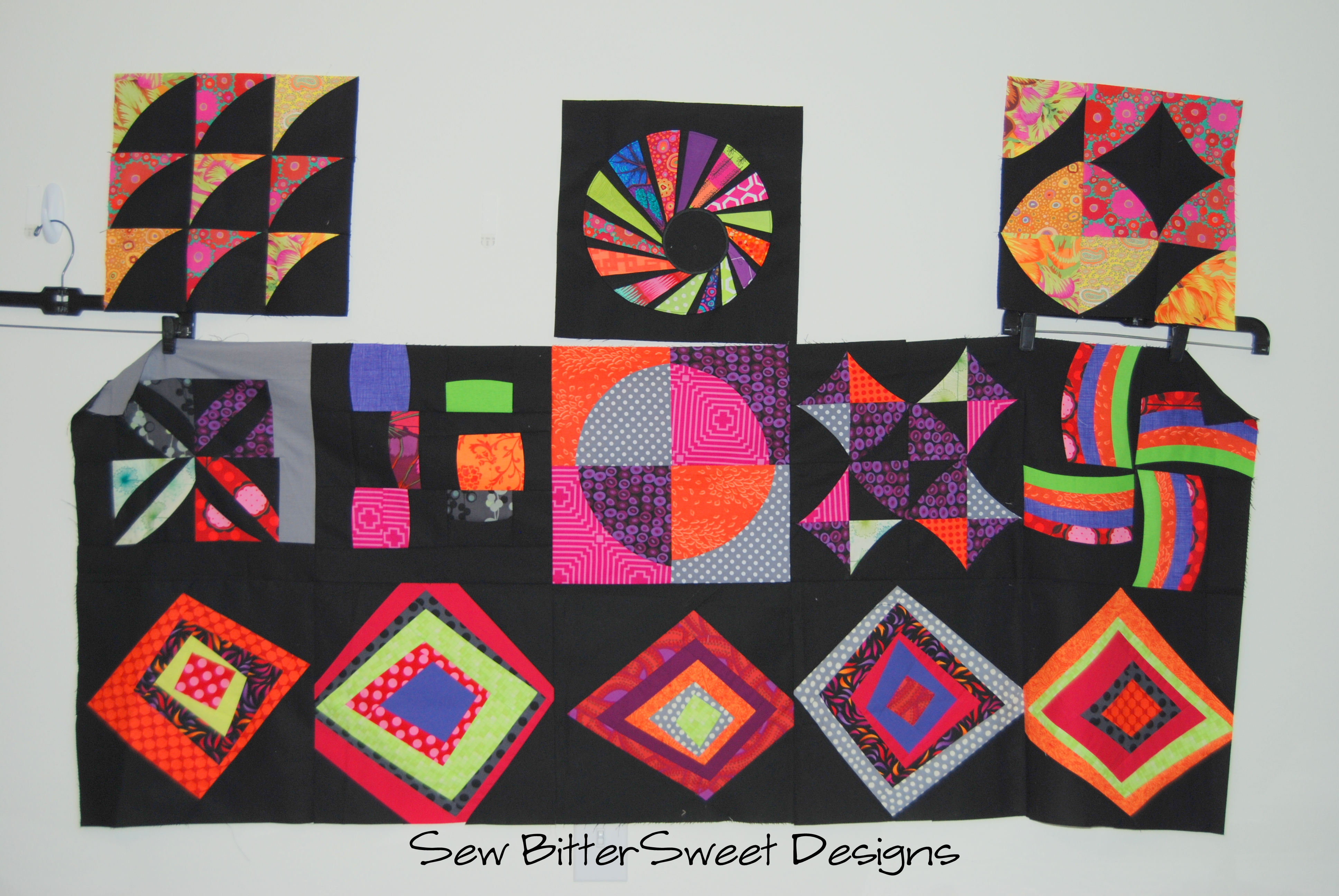 Don’t you just love my awesome design wall! I really do need to hang some flannel or batting or something so I can ditch the tape and hangers!