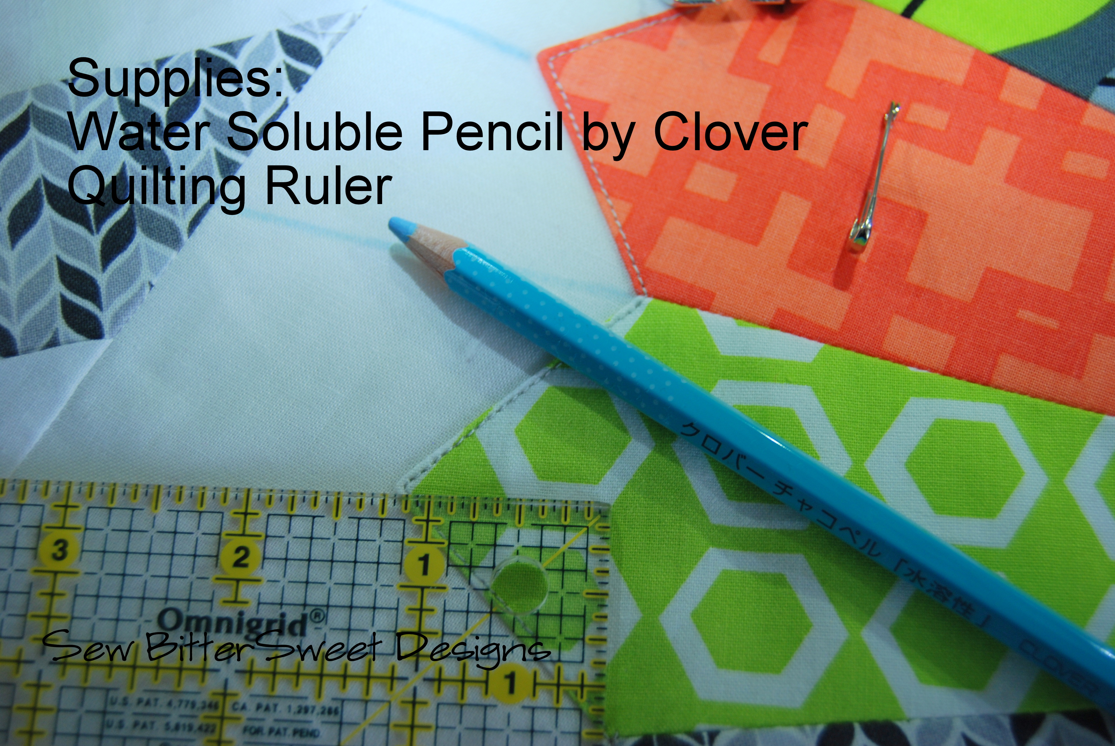 You are going to start with a quilting ruler and a removable marker – I used a water soluble pencil by Clover – these remind me of the grease pencils I used to use in the dark room – they are super easy to remove when you are done with your quilting.