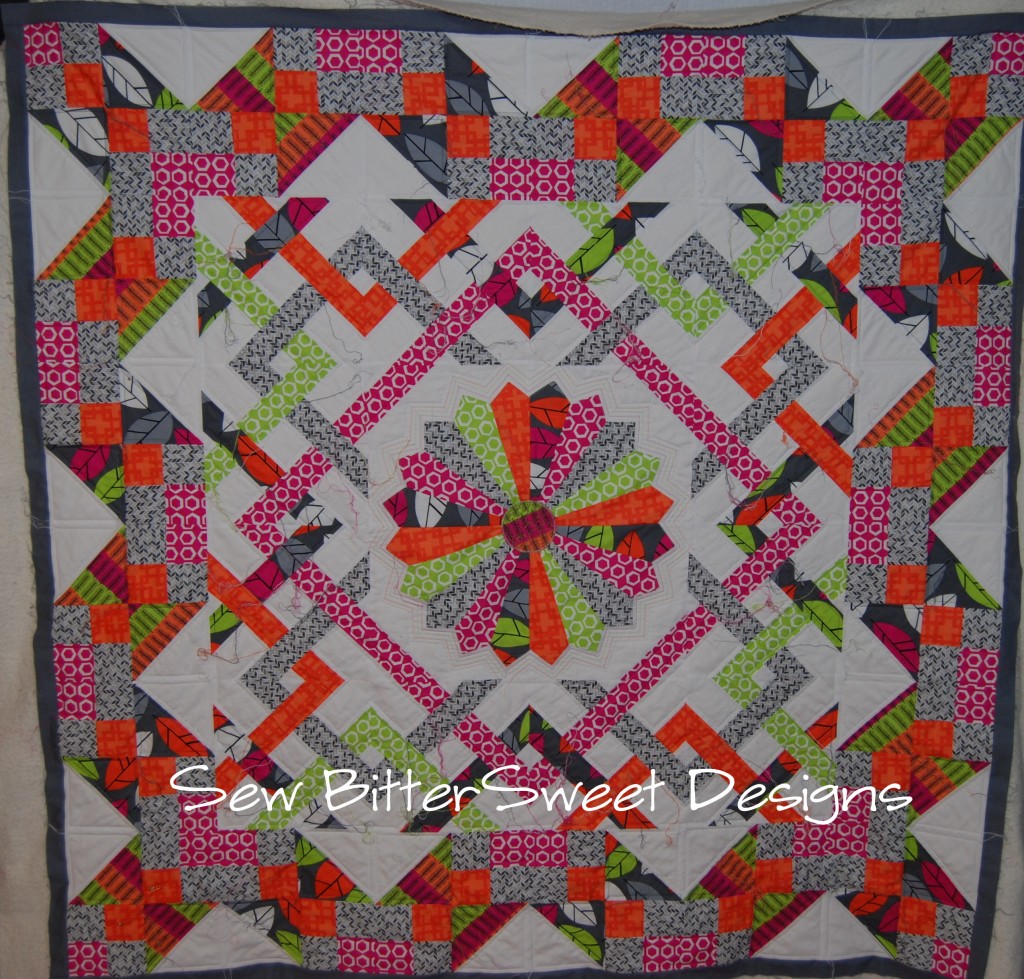 It is the middle of the month and that means Shanna and I would love to see your progress on your Lovely Year of Finishes goal. Mine is progressing nicely, though it has taken a major toll on my hands – even with a large throat machine, it is still hard work shoving a quilt back and forth through the throat!
