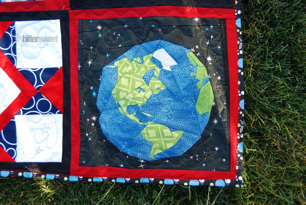 I will be sharing my complete finish in another post but here is a great shot of one of the amazing blocks in the Space Quilt that I finished earlier this month.