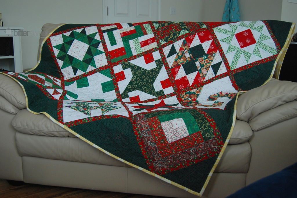 Great job your Christmas quilt, Melissa! And thanks for sharing the back link to your binding tutorial, too. PS. There are only 85 days til Christmas! You’re ahead of the game!