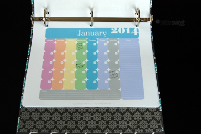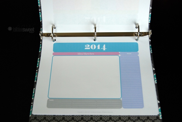 It is a 2″ thick binder, though now I am only using about 1/8 of the space. I have a feeling I will be reprinting the Idea Sketches and Supply List pages of the planner over and over again and will easily fill this binder. If I do…that will mean that I had a successful year of actually planning ahead of my blogging!