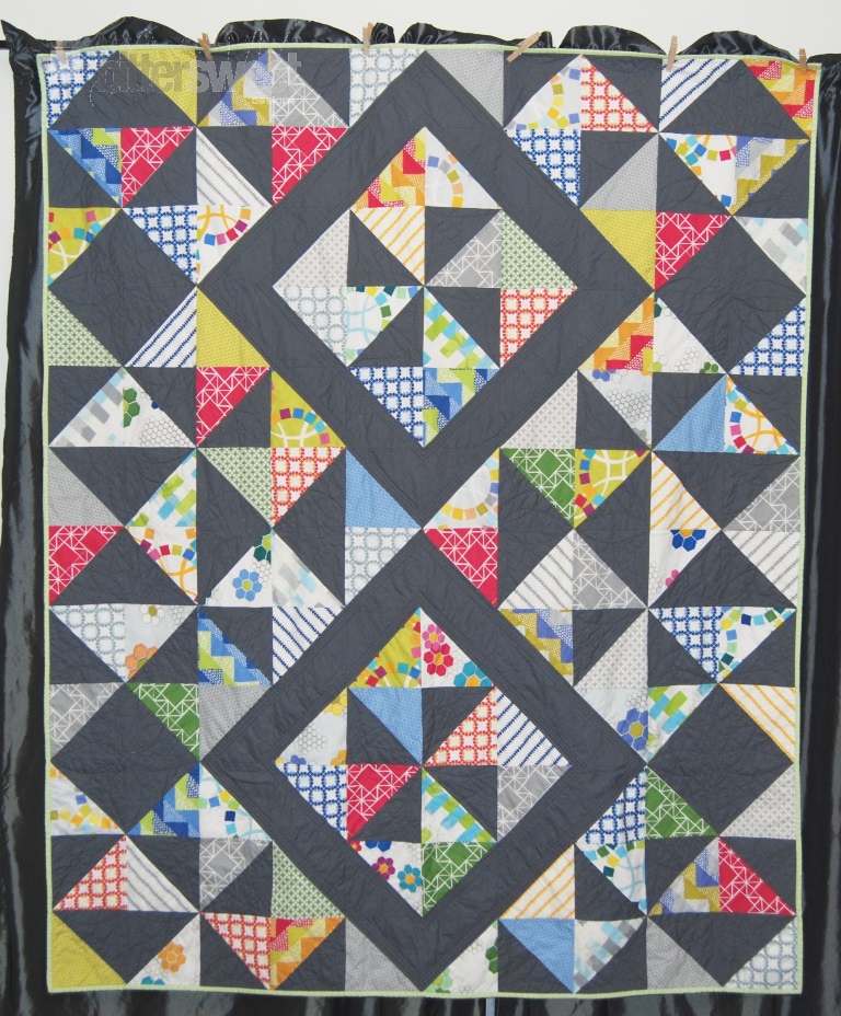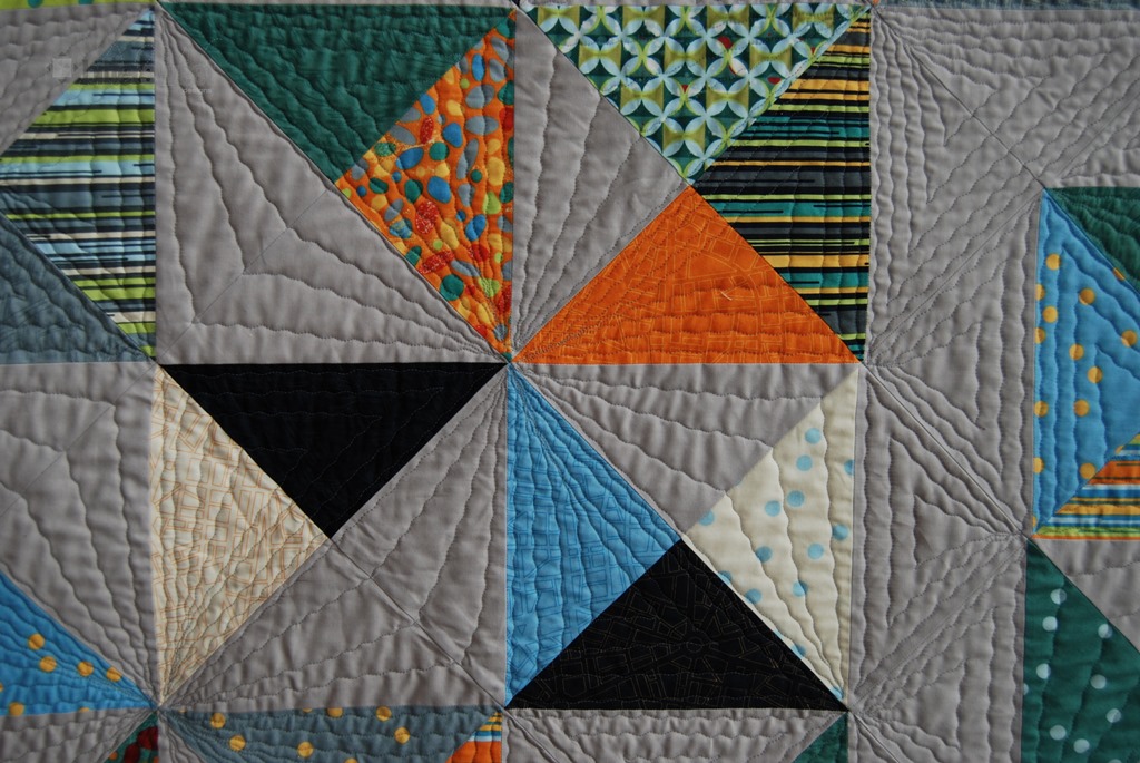 I was very blessed because Vicki from Orchid Owl Quilts quilted my larger version – which is a Christmas gift for someone. Check out her amazing quilting on my dizzying diamonds and pinwheels. She managed to bring so much movement into the overall design. You can see more of her quilting and the quilt here on this post.