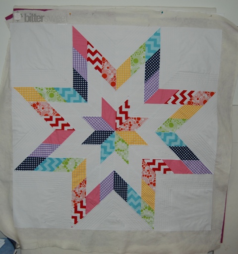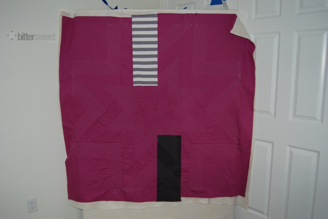 I auditioned my binding choice yesterday. Someone from my guild bound one of her quilts in a chevron and I absolutely loved the over all effect and I’ve decided to take a page out of her book. What do you think?