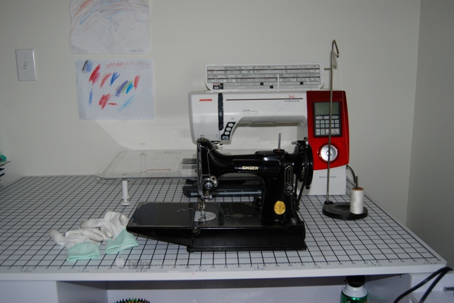 Welcome back to another edition of Not-So-Wordless Wednesday. I missed last week, this month is going by far to fast for me and things that I don’t even want to think about are sneaking up on me. It’s enough to make a grown woman curl up in a ball. In the mean time I have been trying to meet sewing deadlines and commitments. I have come to realize that Irene is my new best friend when it comes to piecing, she is deadly accurate and just a dream to sew on. She sits in front of Jan, my trusty Janome Horizon and go to for any type of quilting. I don’t know why but when I walk into my sewing room and see the two of them like this it always makes me giggle.
