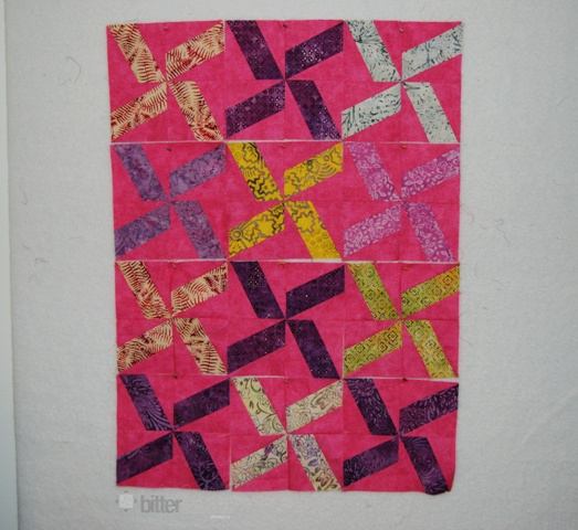 So here is a sewing confession for you, I love batiks! My great grandparents are from French Polynesia and I swear it is just in my blood. So here is my pink, yellow and purple spinner baby quilt. At least the start of it. The blocks are only 8.5″ by 8.5″ so I have quite a few more to make before it is a decent sized baby quilt.