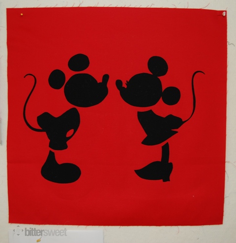 Disney Moment Quilt - https://www.clone.sewbittersweetdesigns.comThis was yesterdays progress. I got Mickey and Minnie cut out and fused down.  I will figure out a quilting plan in the next couple days. I want to keep it simple because this is a very simple quilt. I’m even considering hand quilting… we’ll see.