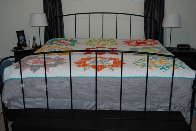 Our bed is king sized and it doesn’t quite hang over the edges, but I’m ok with that, this allows me to see the entire quilt at once!