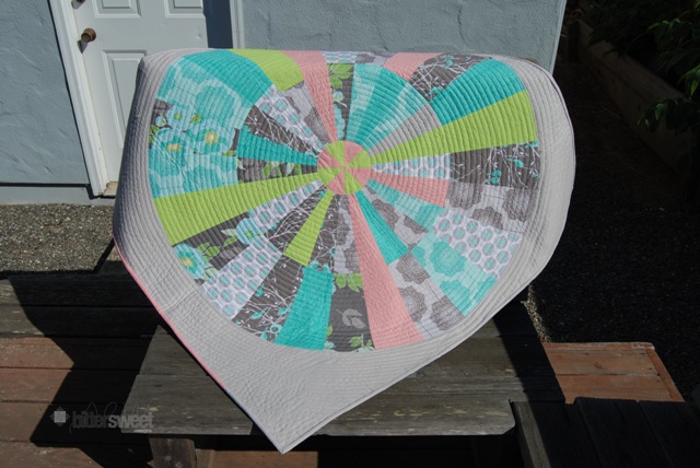 For someone really lucky! I love your design, and the quilting really makes it spin around. Were you dizzy when you finished quilting? =)