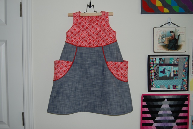 Cute dress I love the piping and the pockets. She looks adorable in it.