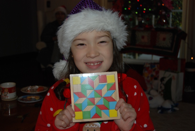 Christmas 2015 - http://staging.sewbittersweetdedesigns.comSanta must know that Anne is a quilter because he brought her this awesome mini tangram puzzle, Anne shouldn’t be at all surprised if mommy steals (*ahem*) borrows it.
