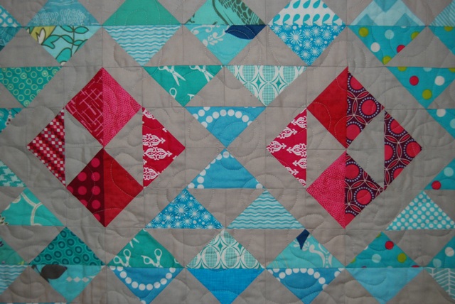 I quilted this at Sewtopia on a Bernina sit down long arm machine. It was an interesting experience. Here is a close up of the quilting.